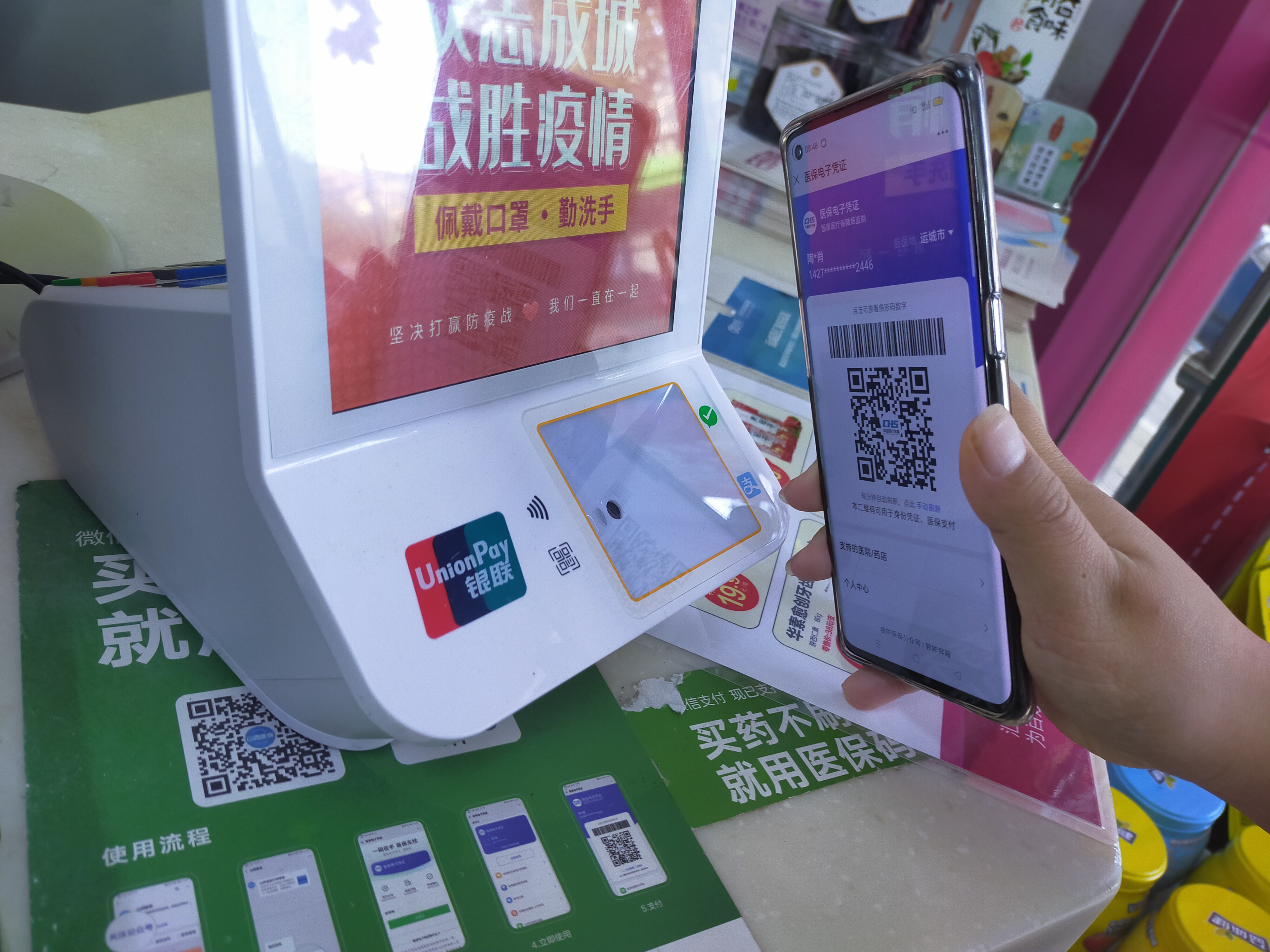 ▲市民在药店使用电子医保凭证支付 陶登肖 摄