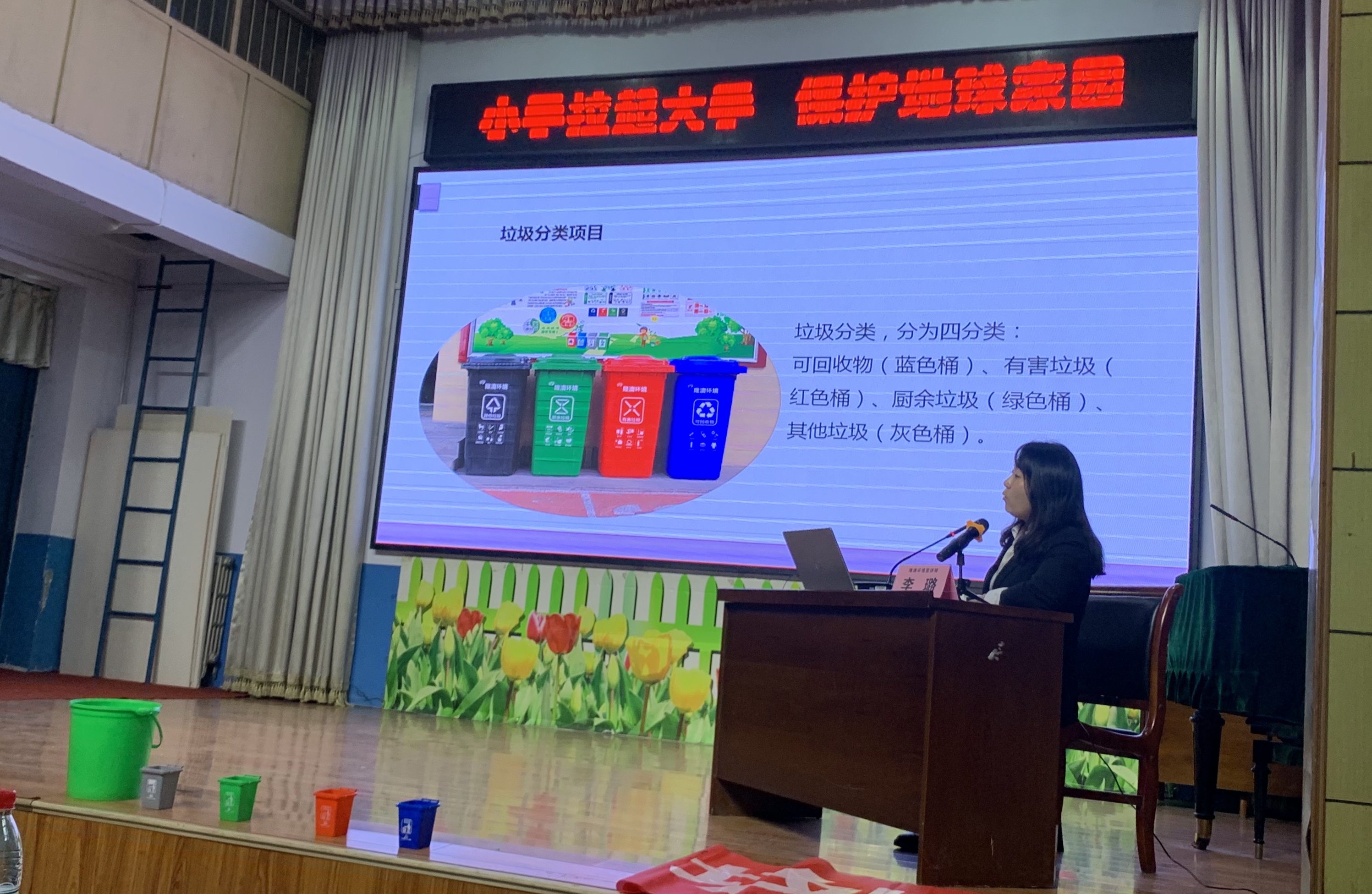 当天,宣讲员向学生讲解了垃圾分类的相关知识,介绍了什么是垃圾分类、生活垃圾的种类、垃圾的危害和垃圾分类的意义等,并带领学生认识各种垃圾投放容器的颜色和标识。同时,活动还以小游戏的形式,让学生体验垃圾分类的乐趣,引导学生积极参与垃圾分类活动。