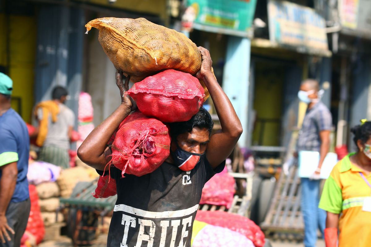 ▲11月3日,在斯里兰卡首都科伦坡一处市场,一名商贩搬运准备分发给市民的生活必需品。为控制疫情,斯里兰卡警方宣布自30日起在包括科伦坡在内的整个西部省实行宵禁,持续至9日。 新华社发(阿吉特·佩雷拉 摄)