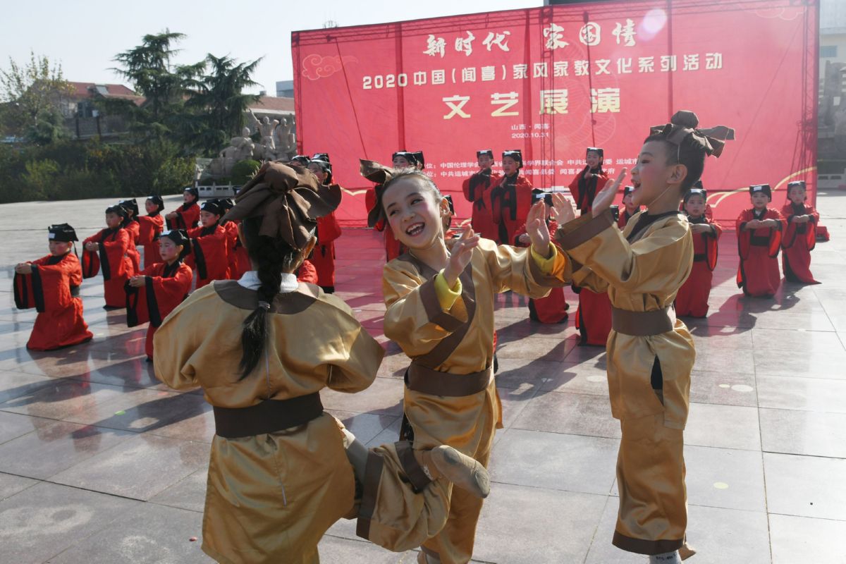 11月2日,闻喜县举办“新时代,家国情”家风家教文化诵读活动,道北小学学生诵读《裴氏家训》。