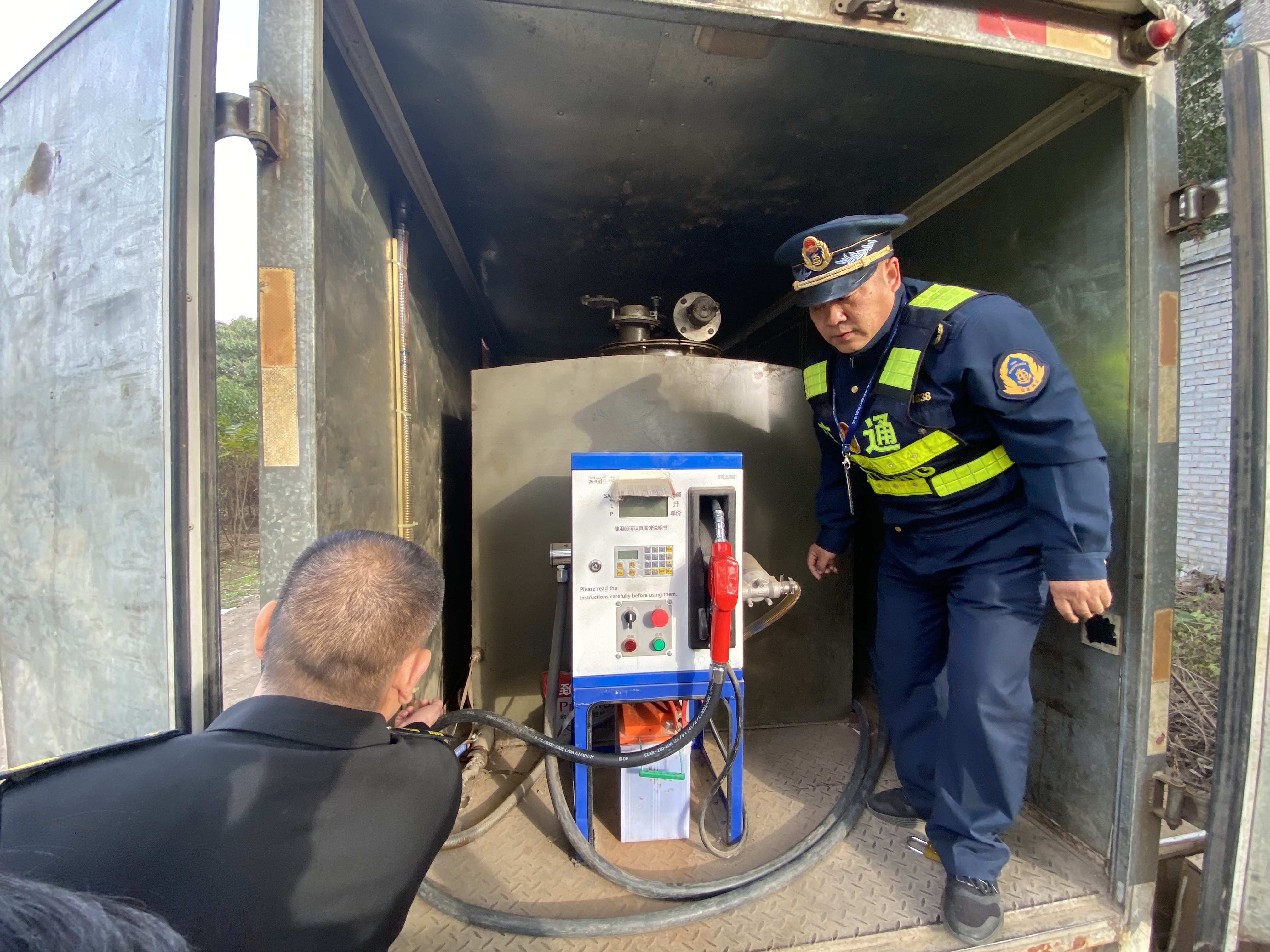 日前,永济市双打办接到群众举报称,市区内有一处违法的黑加油站。经缜密侦查,11月3日下午,在永济市电机厂附近的一处空旷区域,永济市双打办联合公安和交通部门对该黑加油站进行突击检查。现场,一辆无牌的厢式货车被私自改装成可以储存一吨汽油的油仓,对外售油进行牟利。随后,执法人员对涉案车辆进行了查扣。
