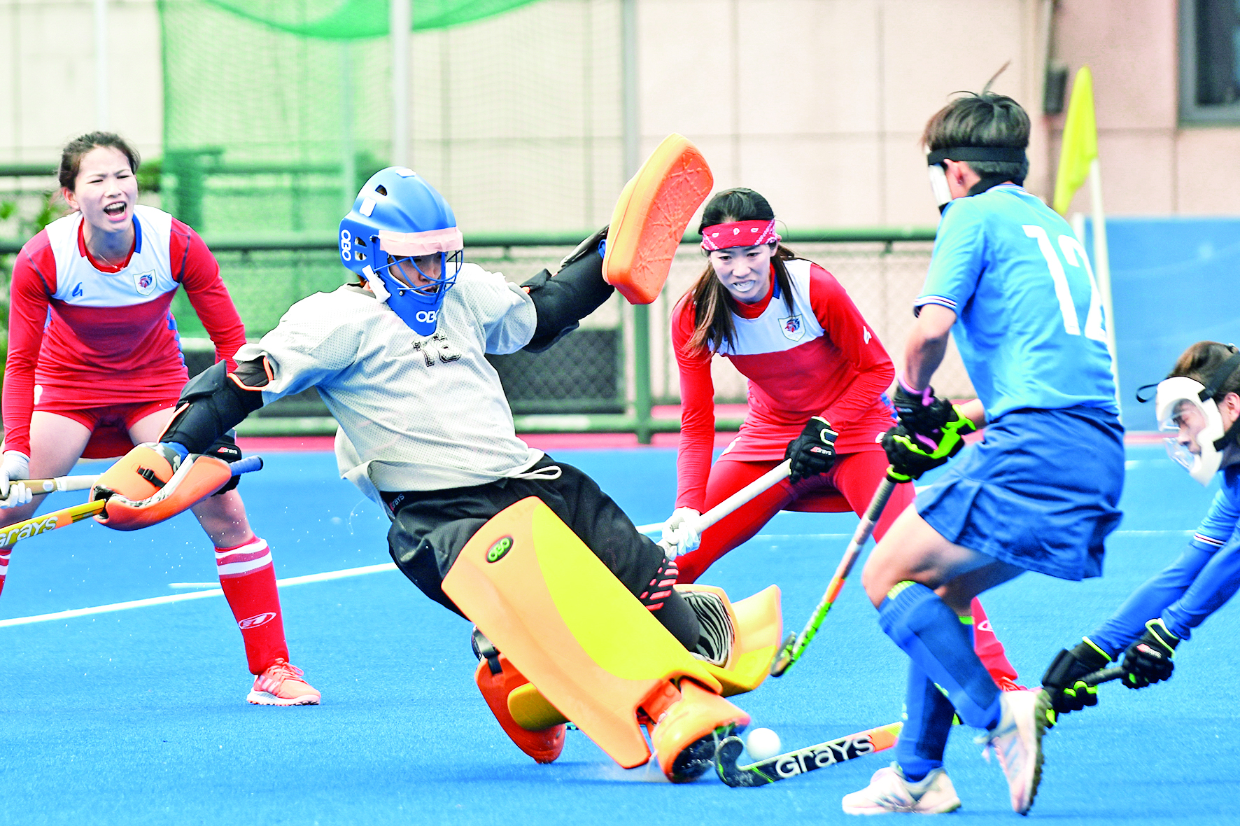 当日,在江苏常州举行的2020年全国女子曲棍球锦标赛第二阶段比赛中,广东队以5比1战胜天津队,进入第五、六名决赛。(史康 摄)