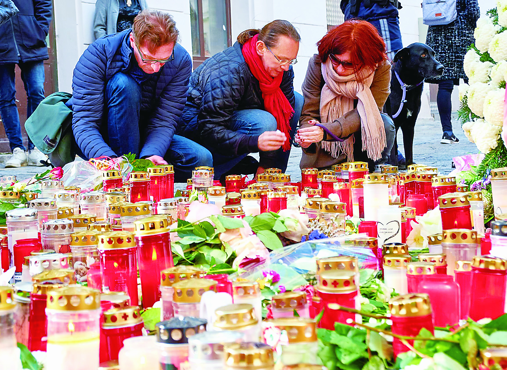 11月5日,人们在奥地利维也纳摆放鲜花和蜡烛悼念遇难者。 奥地利首都维也纳11月2日晚发生枪击事件。奥总理库尔茨谴责这起事件是“卑劣的恐怖袭击”。(乔治斯·施耐德 摄)