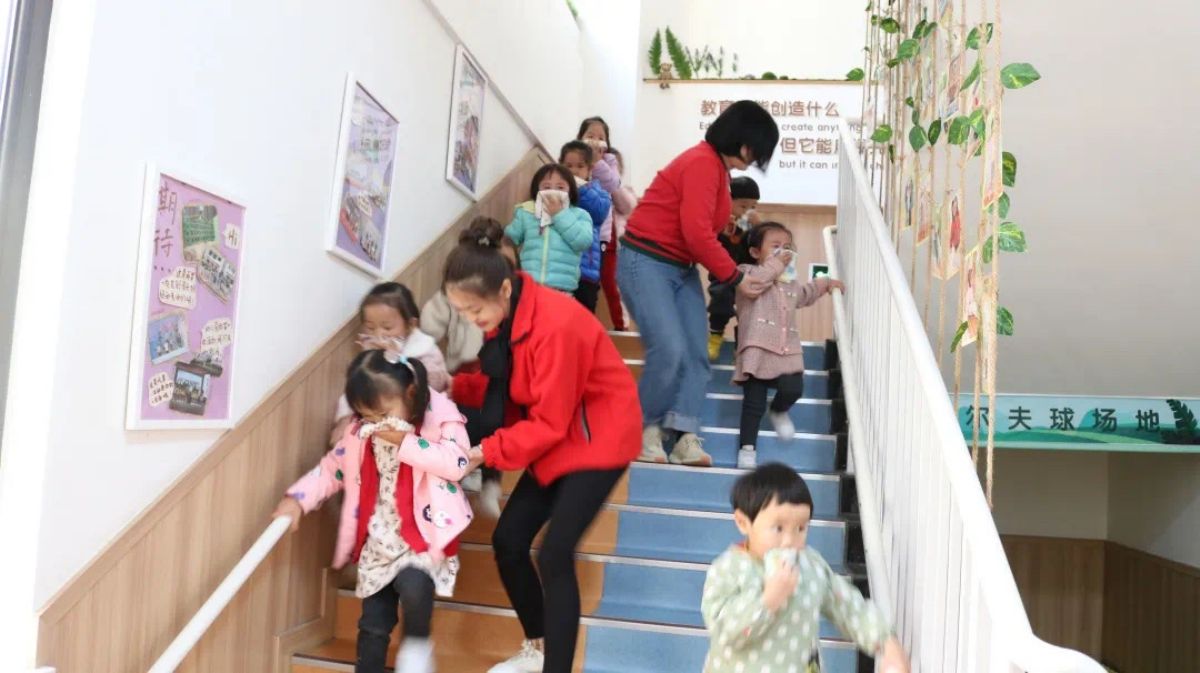 消防演练拉开活动的序幕。演练假设突发火灾,在教师的指导下,幼儿有序撤离,无哭闹、无踩踏、无延时,掌握必备防火知识和逃生技巧。
