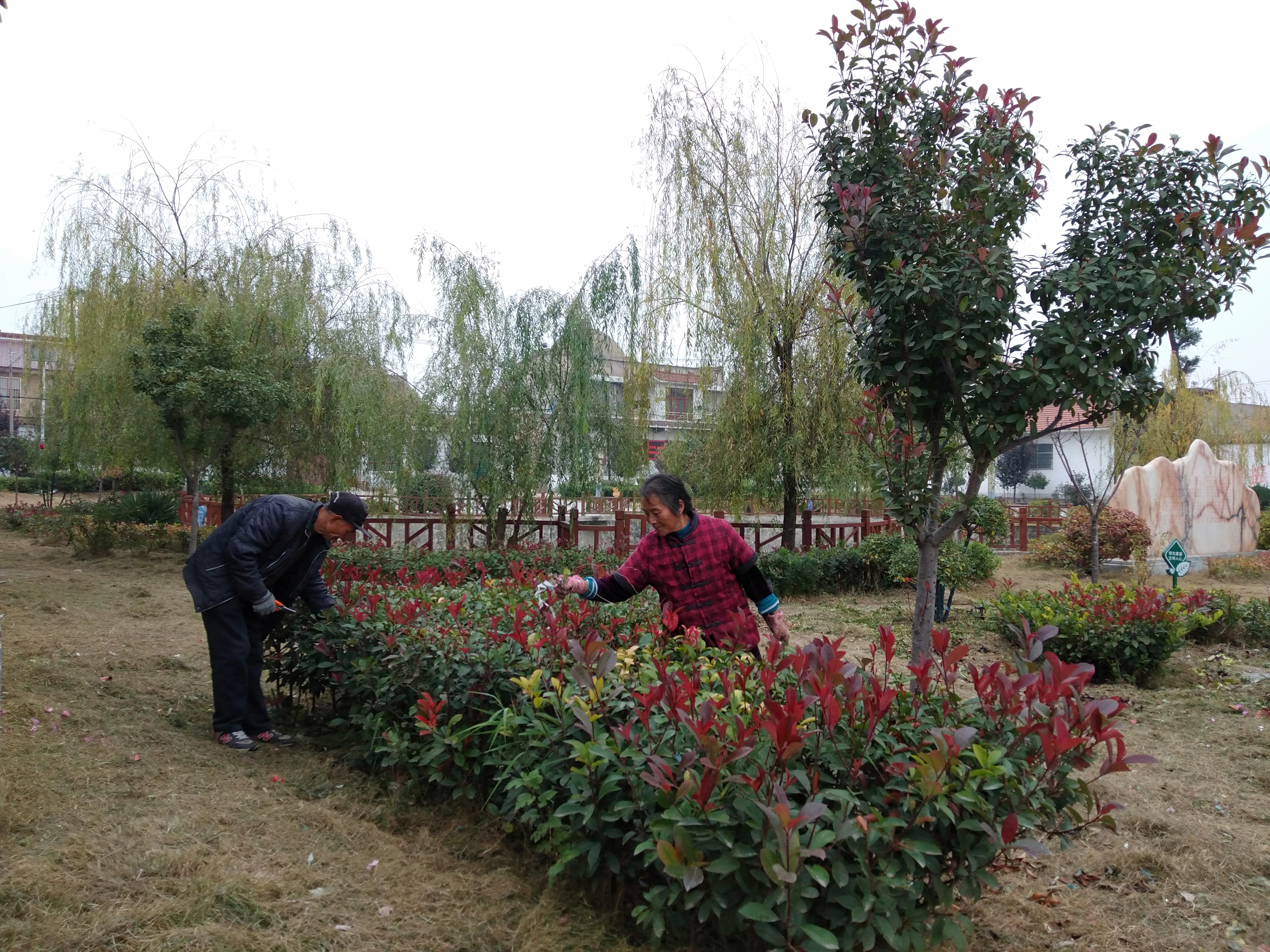 干净整洁的巷道两侧,高低错落有致、乔灌结合、三季有花、四季有绿的高标准绿化带,让人赏心悦目。村子中央,一个由废池塘改建而成的初心公园,柳条低垂,池水清澈,鱼群畅游,凉亭走廊里三五村民悠闲聊天,令人耳目一新。远处,几名修剪绿化带的村民在弯腰忙碌。