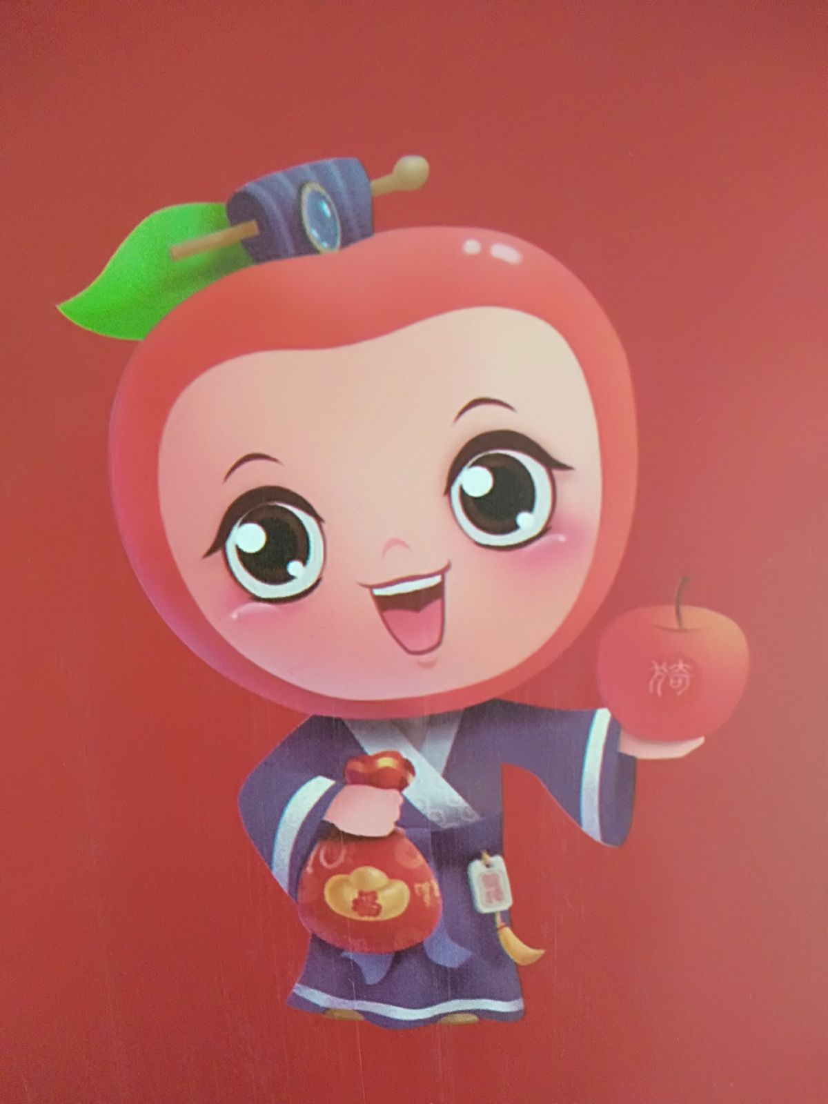该形象名为“临猗福果”,融合了“猗顿”文化元素。它身着战国晋商服饰,一手拿聚宝福袋,一手托临猗苹果,寓意福气和好运。 记者 王斌