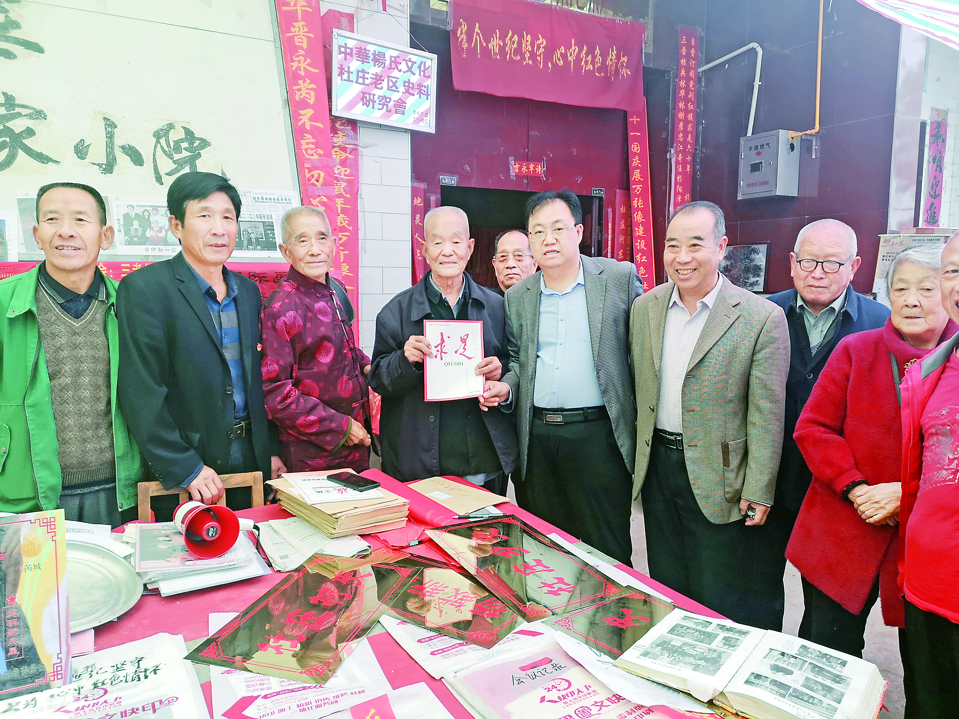 ▲在芮城县杜庄村党报党刊学习会现场展示《求是》杂志 杜磊 摄