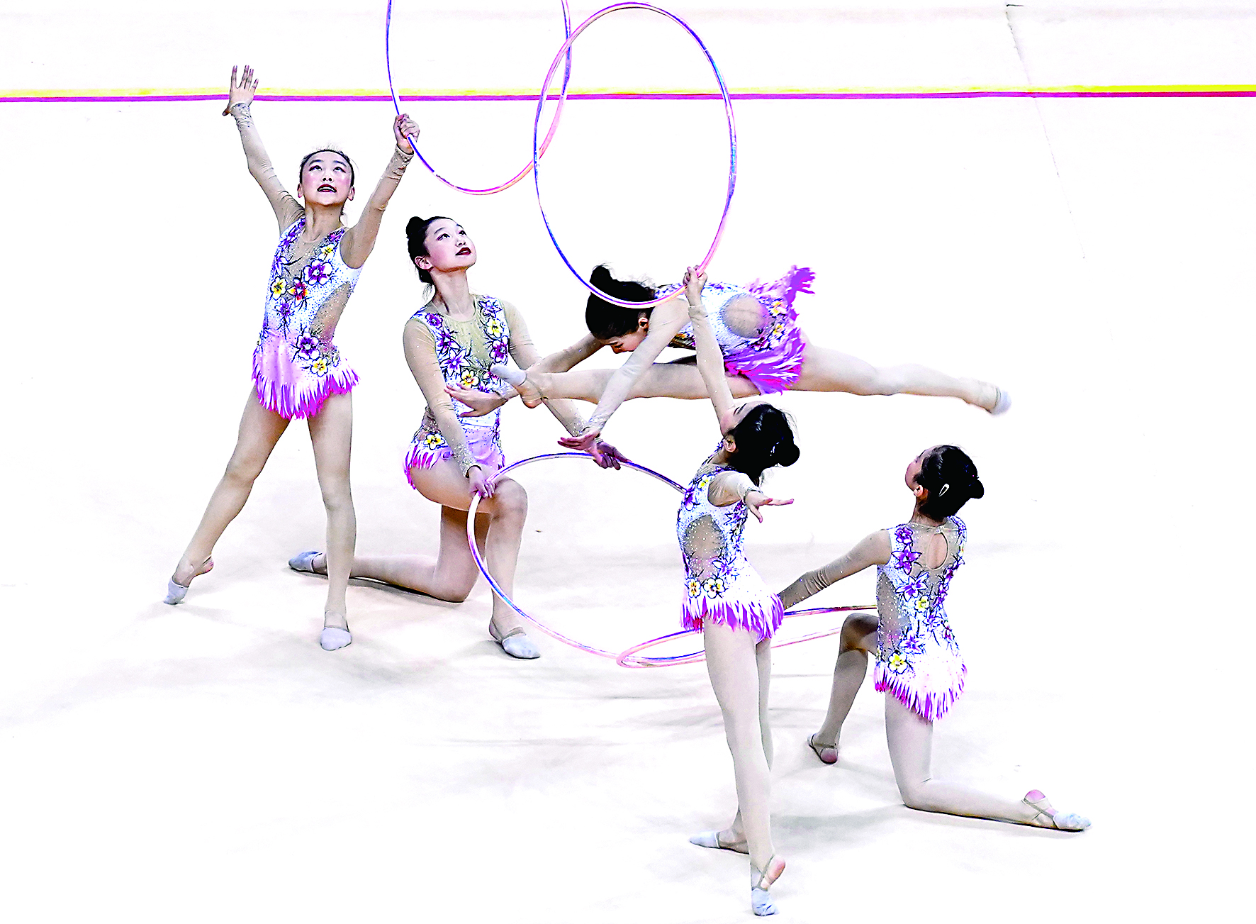 当日,在重庆举行的2020年全国艺术体操冠军赛少年集体全能赛中,四川队、河北队和重庆队分别获得冠、亚、季军。 (新华社记者 陈建力 摄)