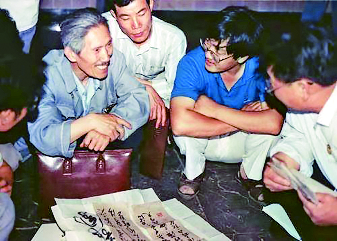 为纪念已故书法艺术大家徐文达先生,前不久,中国书法家协会等单位在太原美术馆隆重举办了徐文达书法艺术回顾展,展出徐先生生前精品力作近百余件,大多作品为藏家所持首次亮相,其中长篇巨幅极具震撼力,在书坛引起强烈反响。田树苌先生说:“徐文达先生是以繁荣发展山西书法事业为己任的一位开拓者,是山西书法事业的一面旗帜。”赵望进先生也讲:“徐文达先生是山西书法事业的先驱者,他把全省热爱书法的年轻人召集起来,团结起来,为繁荣山西书法作出了突出贡献。”在专题纪录片中,我们又一次看到了徐先生那张手持雪茄、身着中山装,神采奕奕和一群年轻人促膝长谈的美好画面。而这张徐老“标准相”就出自那位蹲在先生面前听讲的青年——刘鹏斌。