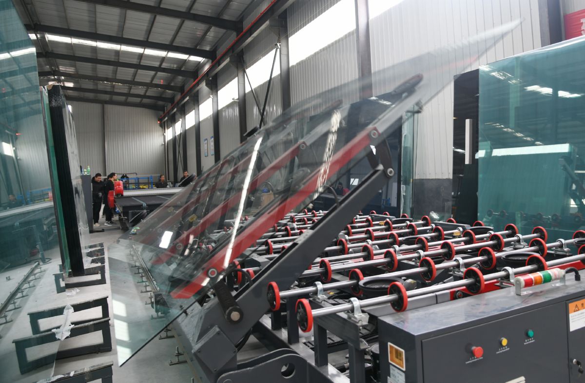 近日,山西林森玻璃有限公司员工在生产钢化玻璃。