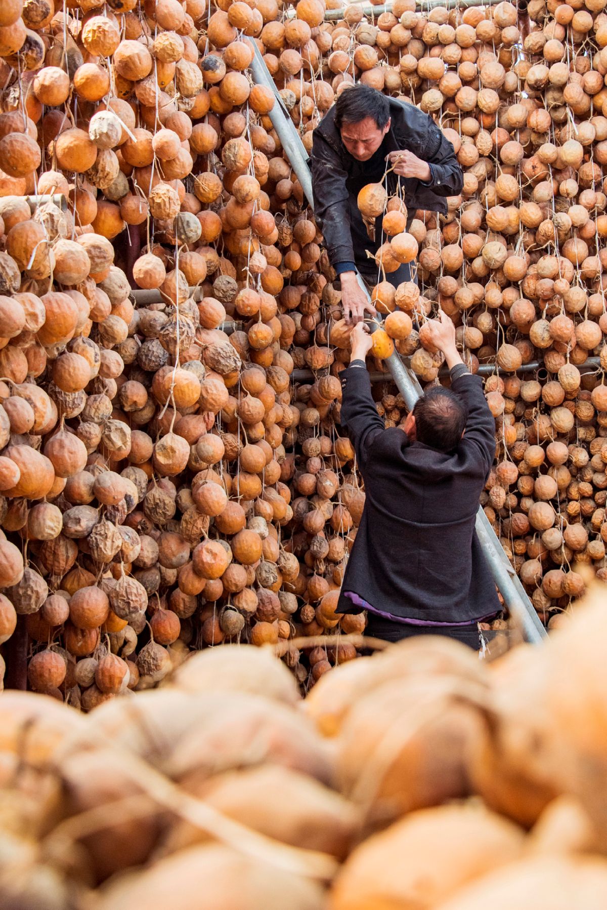 产业扶贫—晾晒瓜蒌 (张 博 摄)