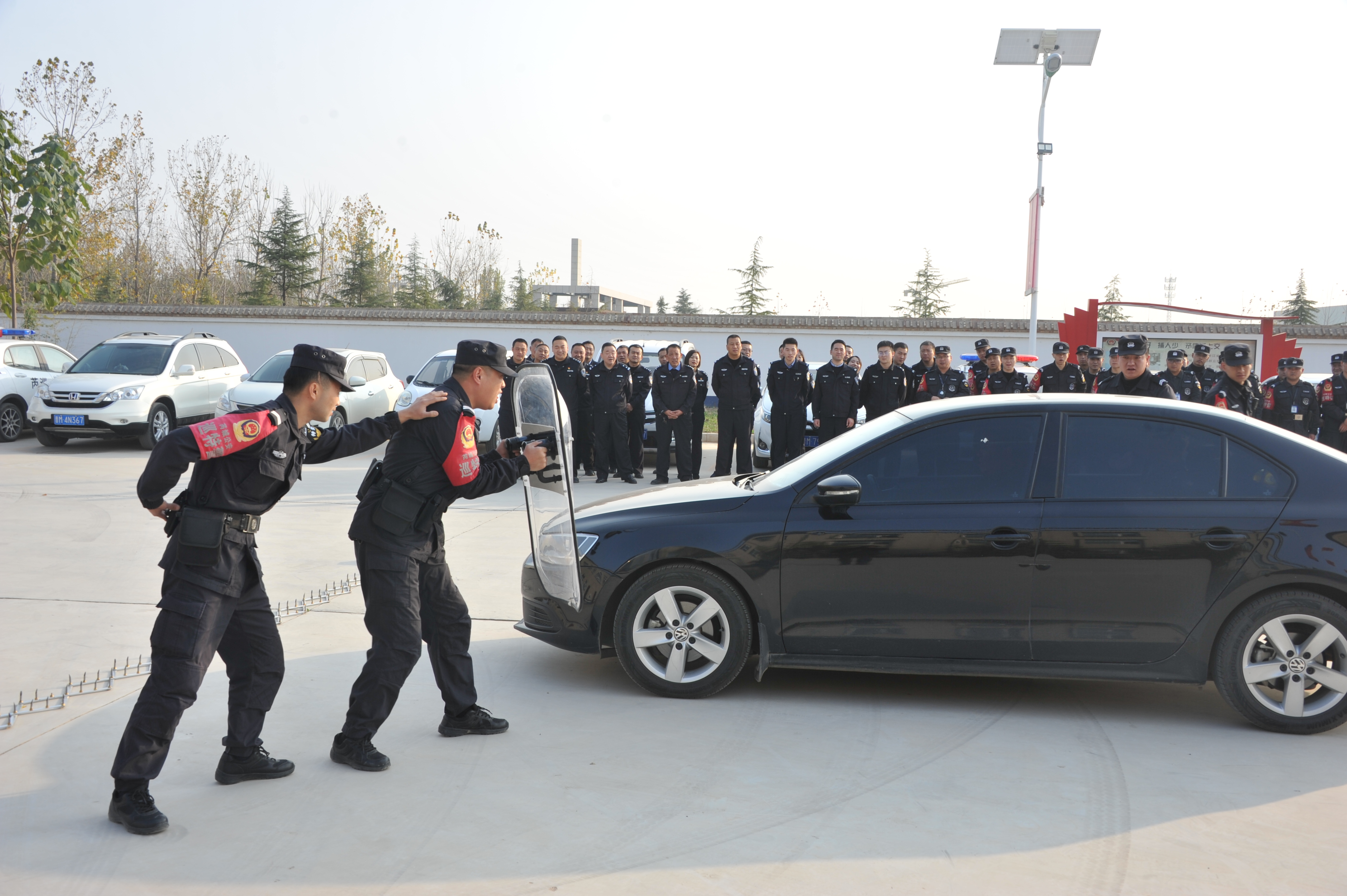 培训中,卢教官以其丰富的实战经验和深厚的理论功底,紧紧围绕实战理念、盘查技巧、嫌疑人控制技能等内容,进行了理论讲解和实战操作;同时,针对民警在日常嫌疑车辆查缉工作中出现的语言不干练、动作不规范、防范意识不强等情况进行了现场指导。此外,卢教官还就徒手防卫与控制、常用警械规范操作、最小单元警组作战、警用盾牌使用等技战术逐一进行了示范培训。
