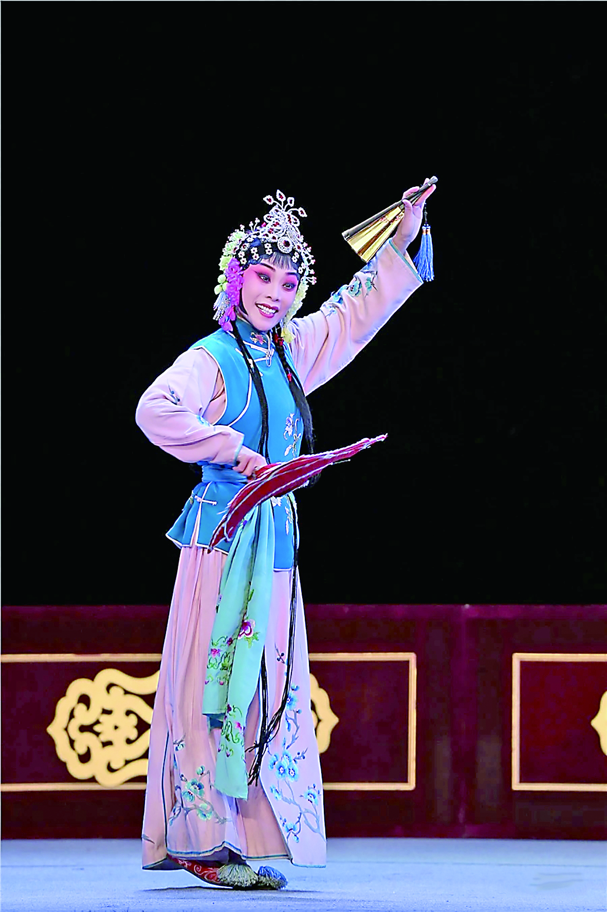《表花》是《火焰驹》之另一折,中国戏剧小梅花奖得主景李琳以声情并茂、字清情准的唱腔,张弛有度、活灵活现、浑然一体的表演,特别是对扇子功、卧鱼、旋帕、飞帕、扇尖顶帕等特技准确精到的运用,深化了剧情和人物塑造。二度出场,仍扮演黄桂英的任玲,呈现了人物多愁善感、百般思念的内在情感,与《打路》中黄桂英的急迫、刚烈,形成明显反差。