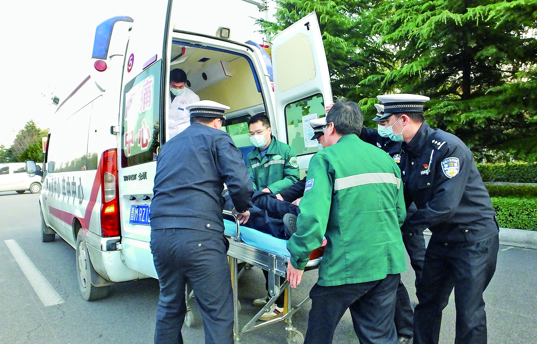 11月19日,新绛县公安局交警大队组织开展常态化“警医联动”交通事故现场勘查急救处置专项演练。 本次演练由该大队与新绛县人民医院120急救中心共同参与。(特约摄影 高新生)