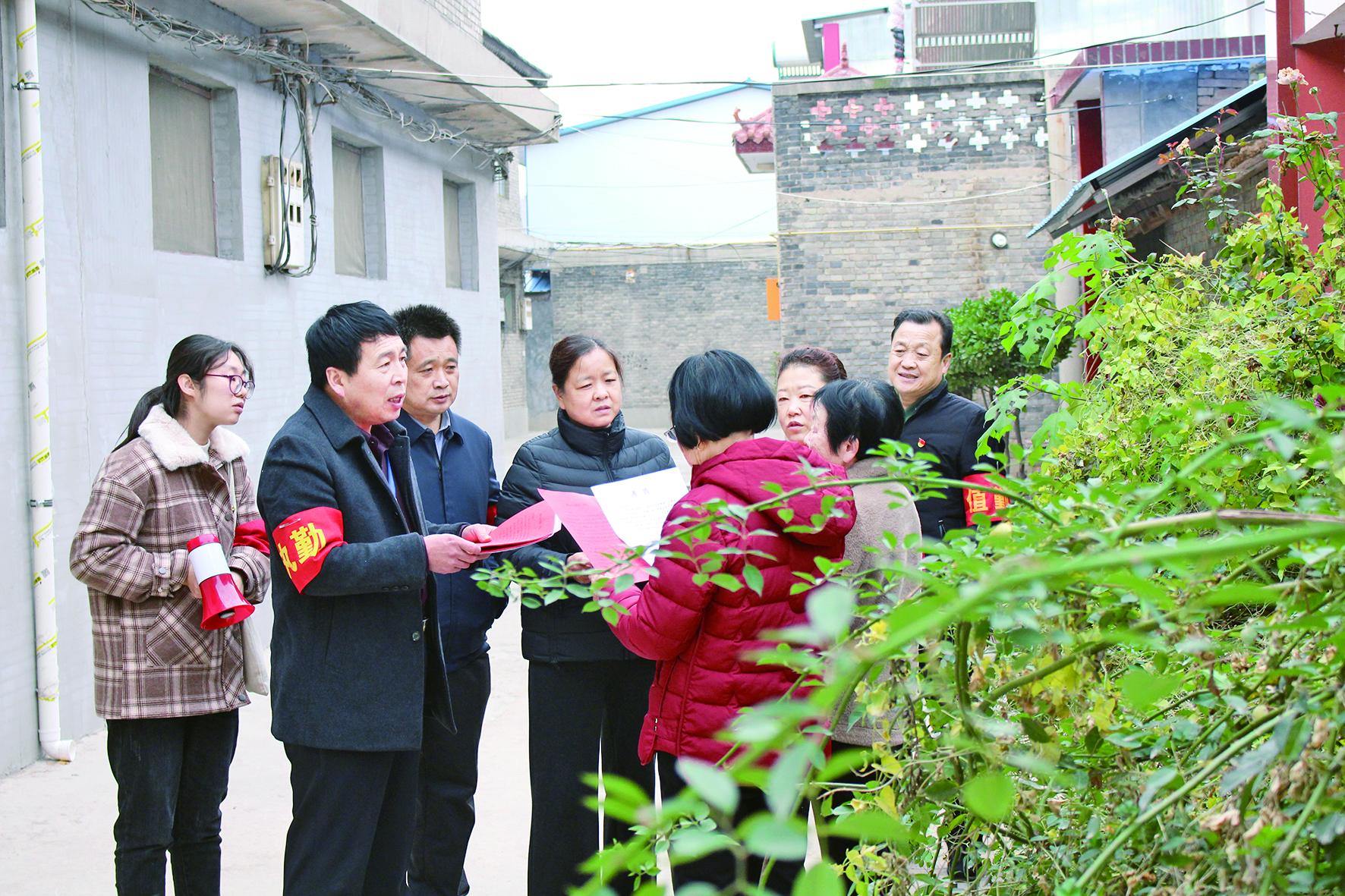 11月22日,闻喜县中城社区党员环保巡逻队向居民宣传《中华人民共和国大气污染防治法》等法律法规。