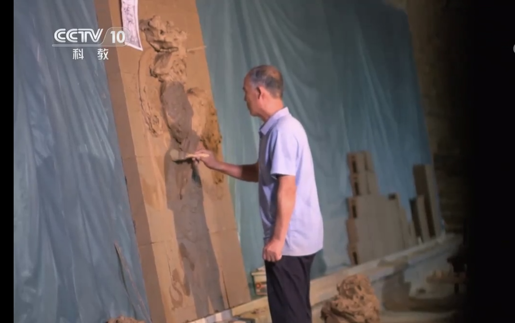 (同期声,地方文物部门工作人员)你好,今天我们请你过来,主要是让你看一下我们这个砖雕,怎么给修复一下,你给提点儿建议。