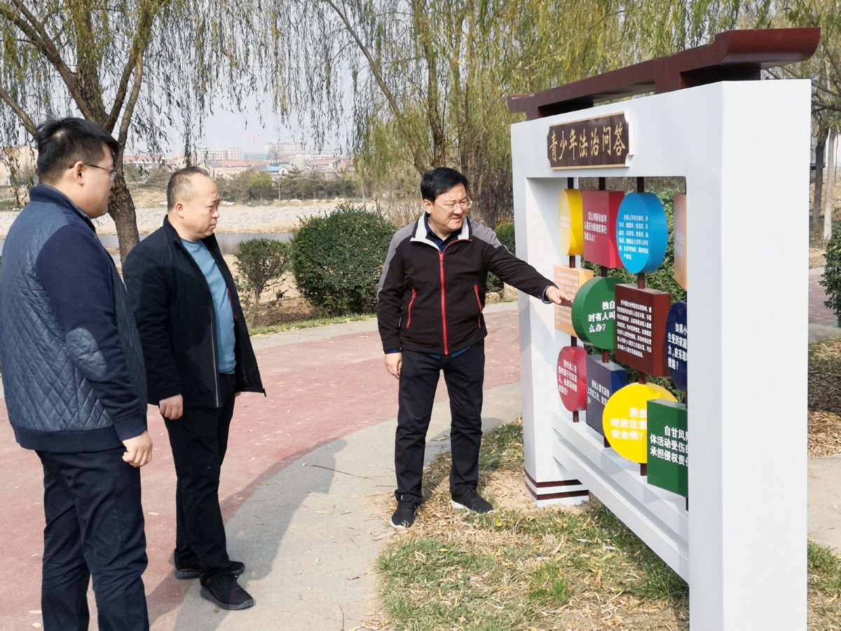 11月20日,闻喜县司法局工作人员在该县法治文化公园检查指导施工进度。