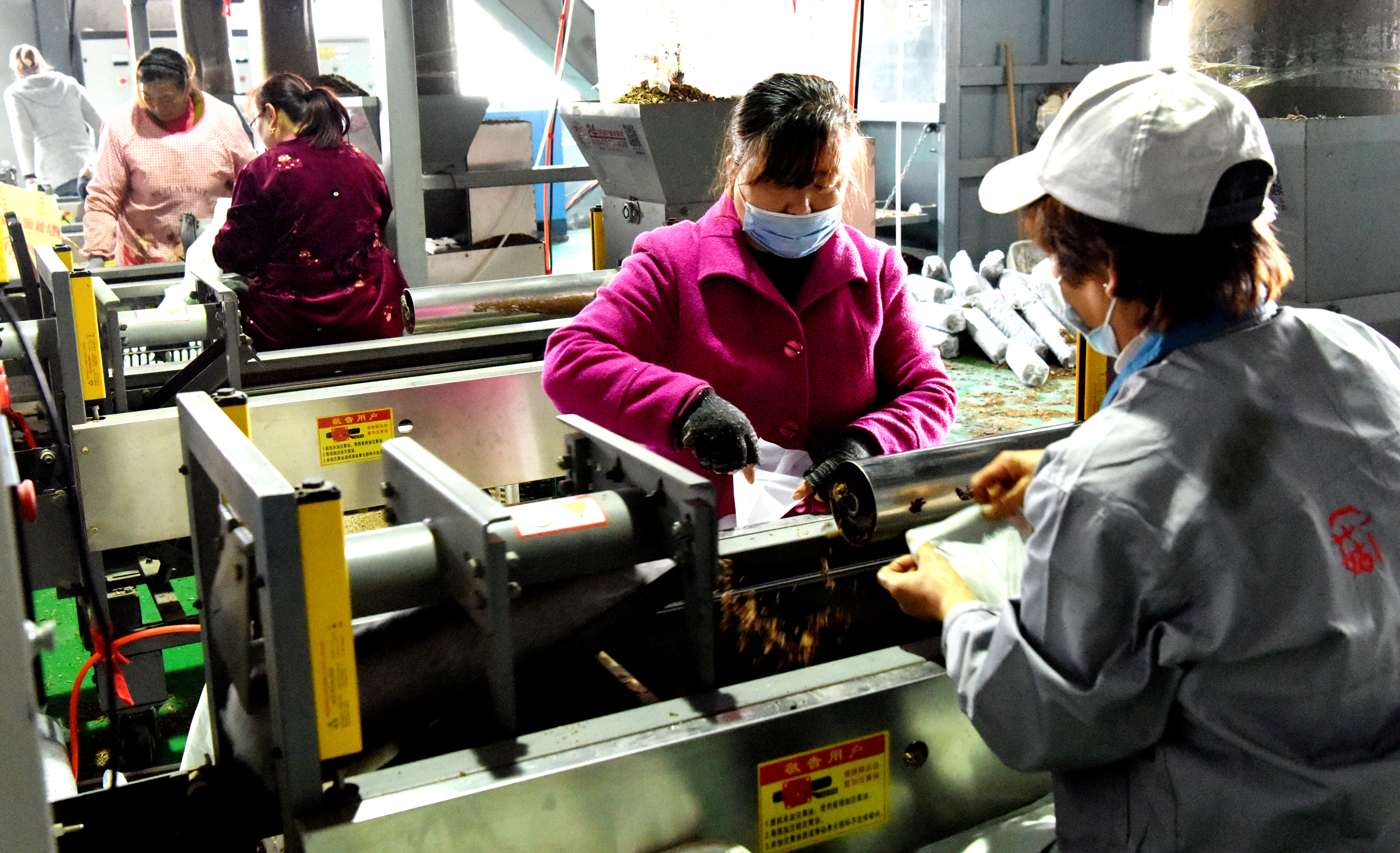 11月20日,垣曲县香菇示范园工人在加工菌棒。