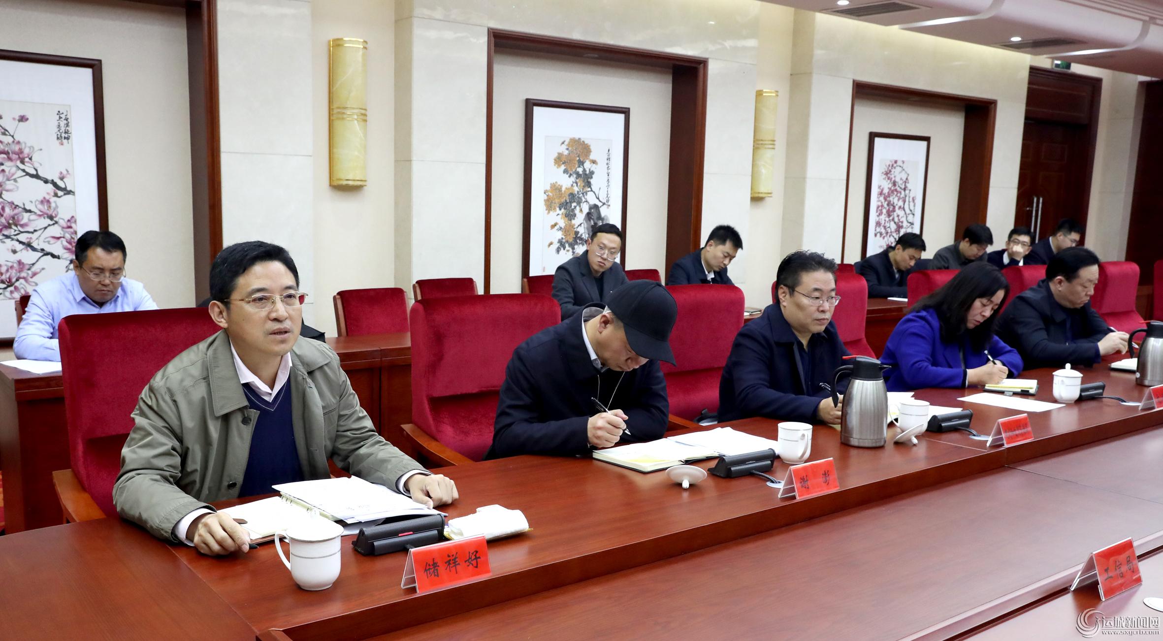 丁小强认真听取与会部门负责人关于全市招商引资、项目落地进展、专班招商、优化营商环境等情况汇报,并和大家一起研究解决招商引资工作中的难点和重点。