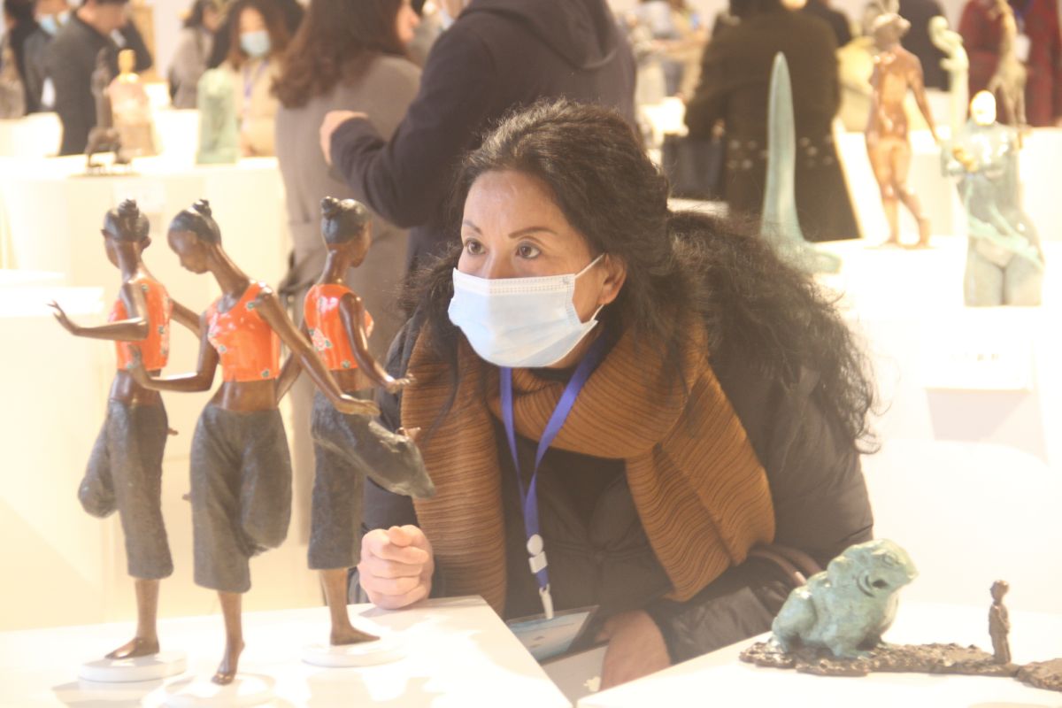在宇达青铜文化产业园的原创青铜艺术馆内,盐湖“掐丝珐琅”技艺传承人马金瑞被一件题为《踢毽子》的铜雕作品所吸引,她目不转睛,左看右看,神情十分专注。“你看她的面部表情,再看她的肢体语言,我能够感受到里面的故事,思绪一下子就被拉回到了童年……”马金瑞说,此次观摩让她收获了许多可以借鉴的东西,下一步会通过面部表情等细节方面的呈现,将思想和故事融入她的每一件作品当中,相信这样才能打动更多的人。