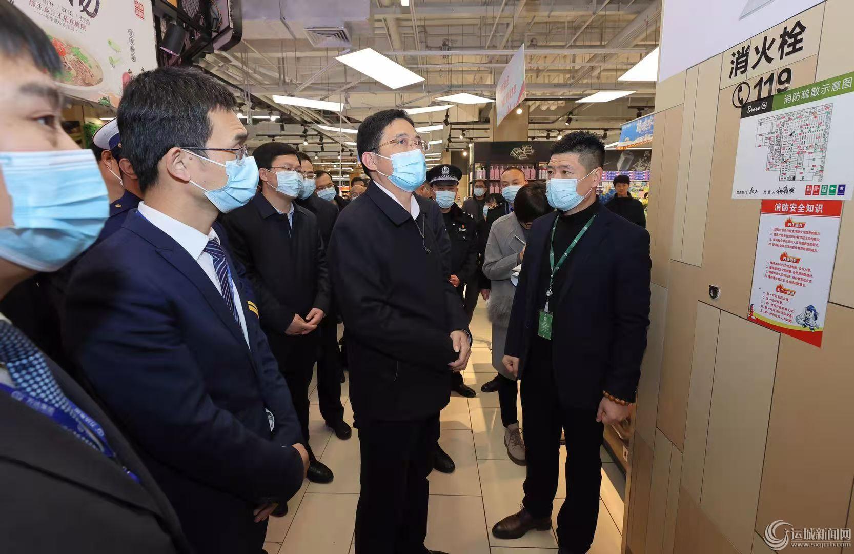 储祥好十分关注人员密集场所的安全防范和疫情防控。他来到市区万达广场,了解冷链食品储运、溯源、检测等情况,检查商场防火分区是否规范、安全出口是否畅通,查看消防控制中心运行和人员值班情况。储祥好强调,商场超市人员聚集性、流动性强,安全工作不能有丝毫松懈。要始终保持高度警觉,严格落实常态化防控措施,严把冷链食品安全关,坚决防止疫情反弹。要利用智能化手段,加大对消防器材、电梯电器、疏散通道等检查力度,提高应急防范能力,让群众安全购物、企业安全经营。