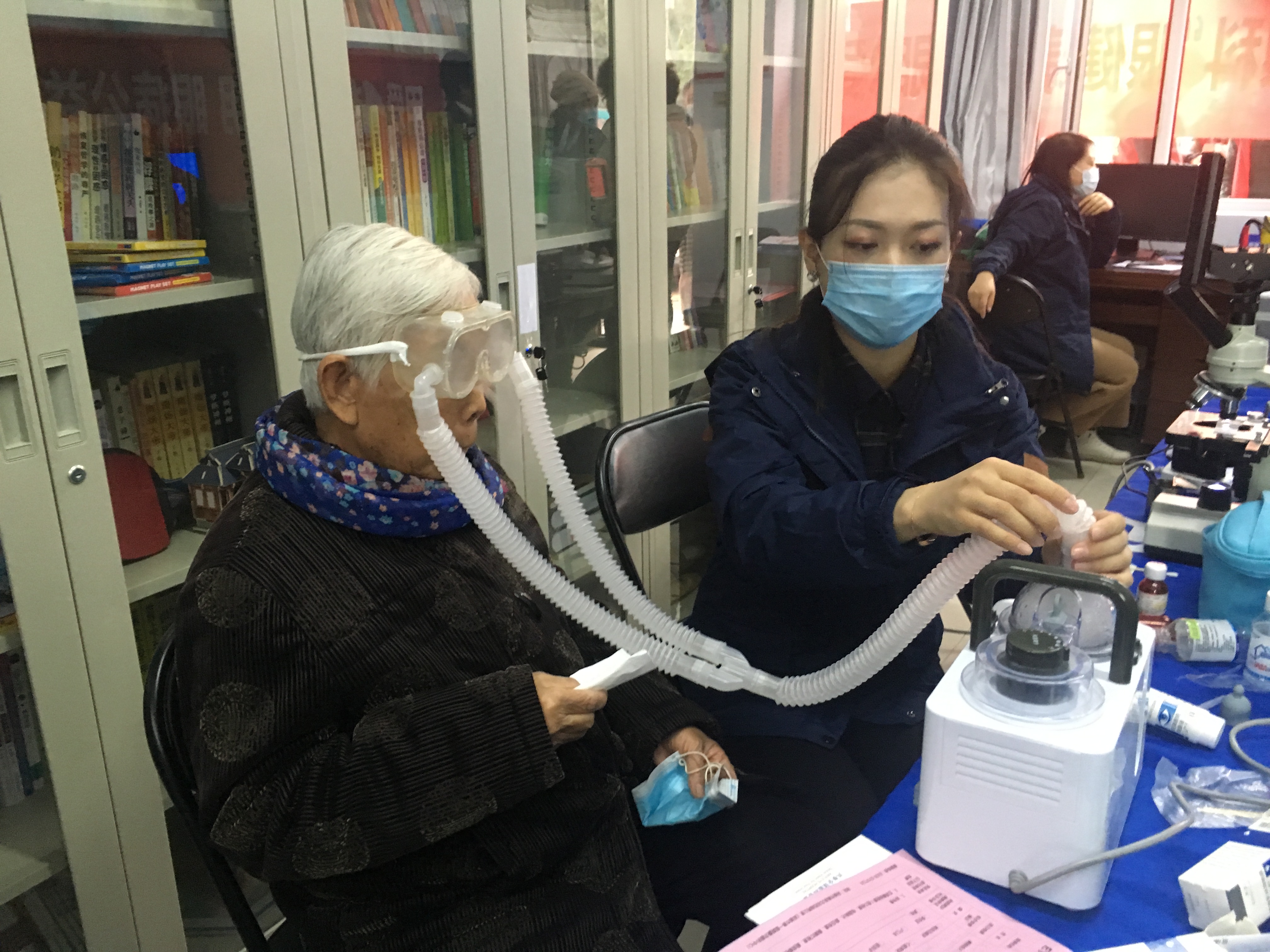 ▲医护人员为老人进行眼部清洁及护理 赵茜 摄