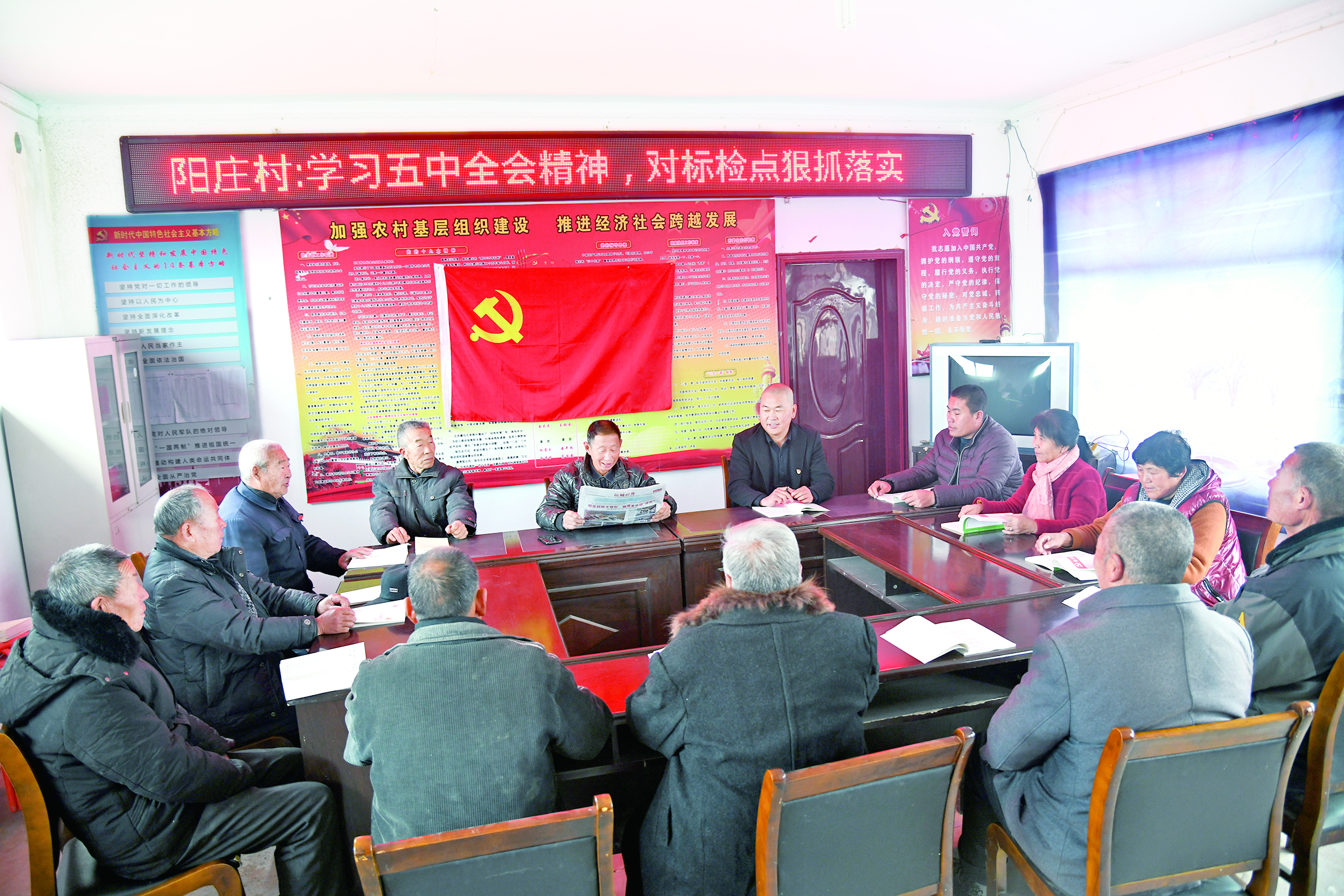 11月30日,闻喜县后宫乡阳庄村党支部组织党员干部开展“学习五中全会精神,对标检点狠抓落实”主题活动。