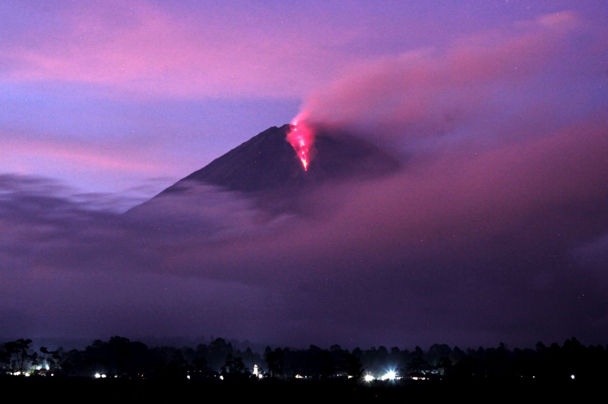 ▲这是12月1日在印度尼西亚东爪哇省卢马姜地区拍摄的正在喷发的塞梅鲁火山。