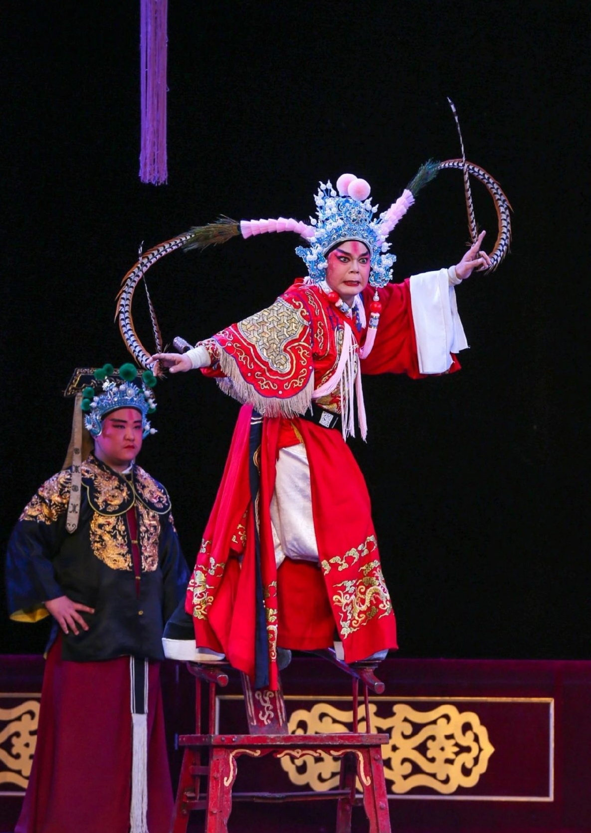 优秀老旦邵金蒙和蔡宁合演的《岳母刺字》,将岳家母子在社稷濒危、百姓流离之际,胸怀天下、精忠报国的家国情怀,演绎得深刻到位。邵金蒙的核心唱段气息充沛、行腔舒展,尤其精彩。
