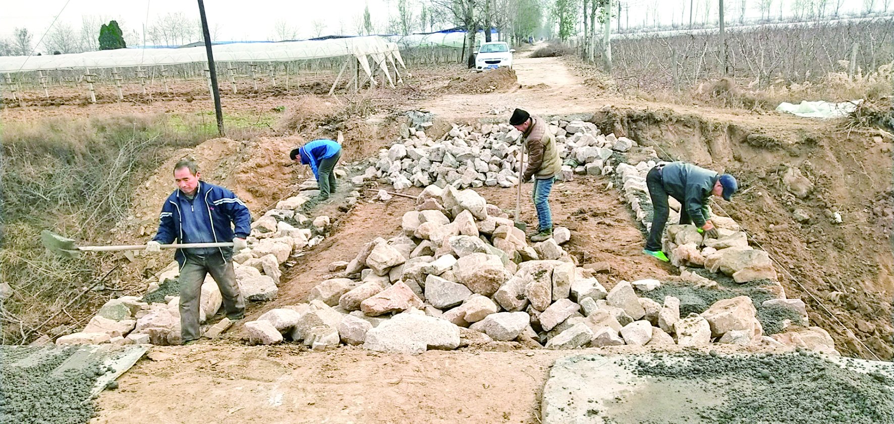运城晚报讯 12月3日,在位于永济市东北腹地的开张镇牌首村排水干渠桥梁施工现场,工程队冒寒紧张施工。