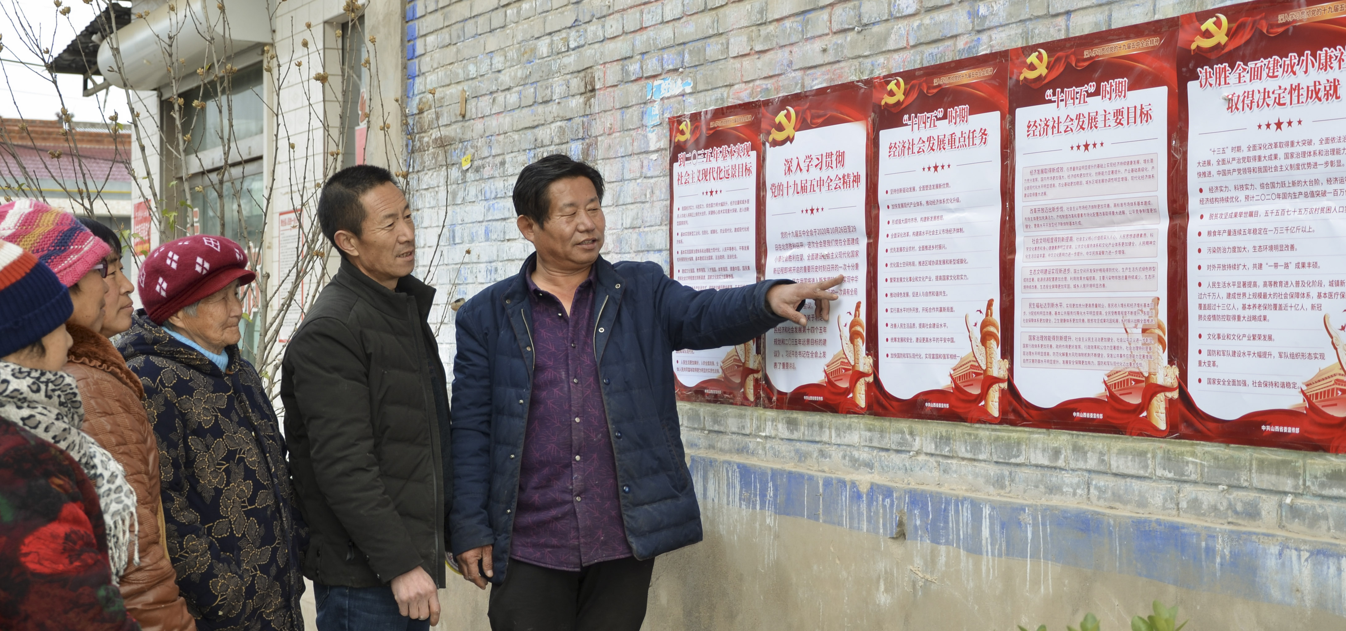 12月3日,万荣县裴庄镇包村干部钱学平在该县北百祥村,为村民宣讲党的十九届五中全会精神。 连日来,万荣县裴庄镇利用广播、网络、板报、张贴宣传画等形式,宣讲党的十九届五中全会精神。要求机关干部先学一步,弄懂学深悟透,从而肩负起全会精神宣传的重任,以实际行动把全会精神贯彻落实到工作中去。特约摄影 解建国