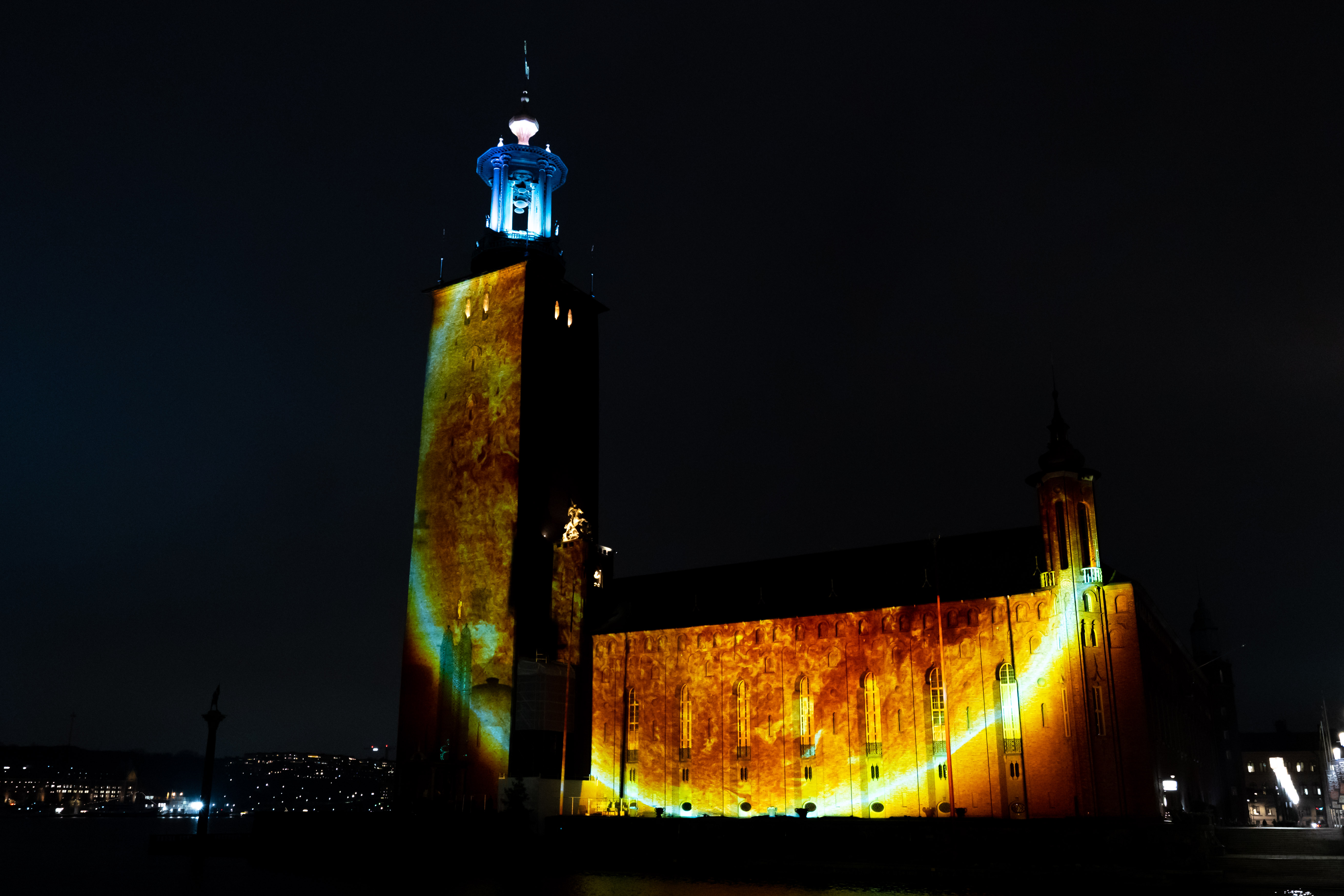 瑞典首都斯德哥尔摩在12月5日至13日举办光影秀。作为2020年诺贝尔周系列活动中的一个重要篇章,光影秀将艺术与科技融合,以一种全新的方式庆祝诺贝尔奖。受新冠疫情影响,今年12月不再举行传统的诺贝尔奖颁奖典礼,颁奖仪式将改为线上举行。 新华社发(魏学超 摄)