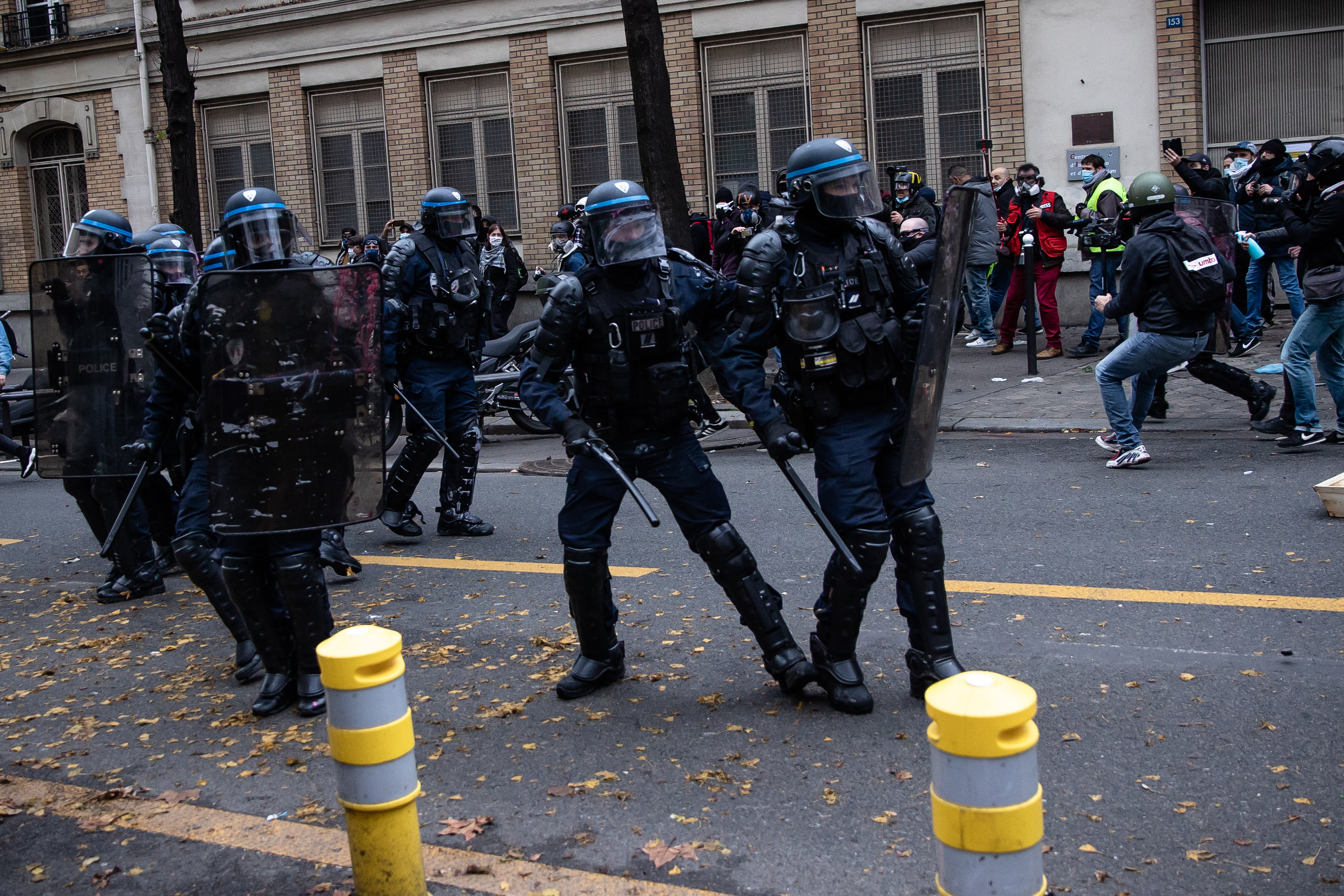 ▲12月5日,警察在法国巴黎游行示威活动现场警戒。 法国多个城市5日举行游行示威活动,警方和示威者在部分游行地点发生冲突,60多名示威者被逮捕。新华社发(奥雷利安·莫里萨尔 摄)