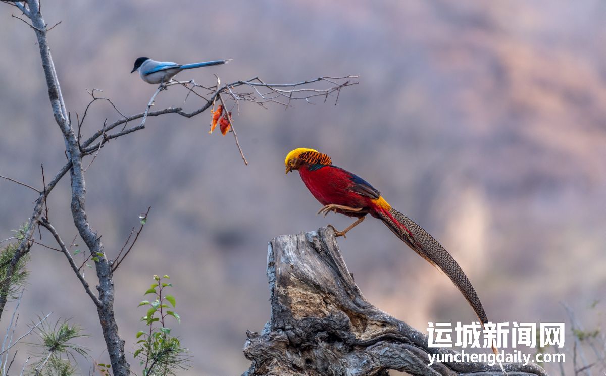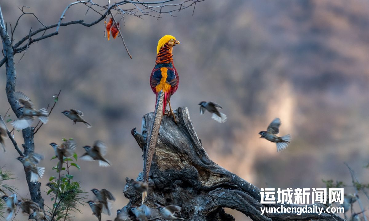 当日,位于盐湖区境内的中条山腹地,几只身披彩妆的红腹锦鸡在林中或觅食、或游走、或飞翔,给冬日的中条山平添了色彩和生机。 近年来,运城市不断推进生态文明建设,辖区自然环境质量不断改善,来此栖息的红腹锦鸡、白天鹅等各种鸟类数量不断增加,吸引众多游客和摄影爱好者前来观赏拍摄。 记者 薛俊 摄