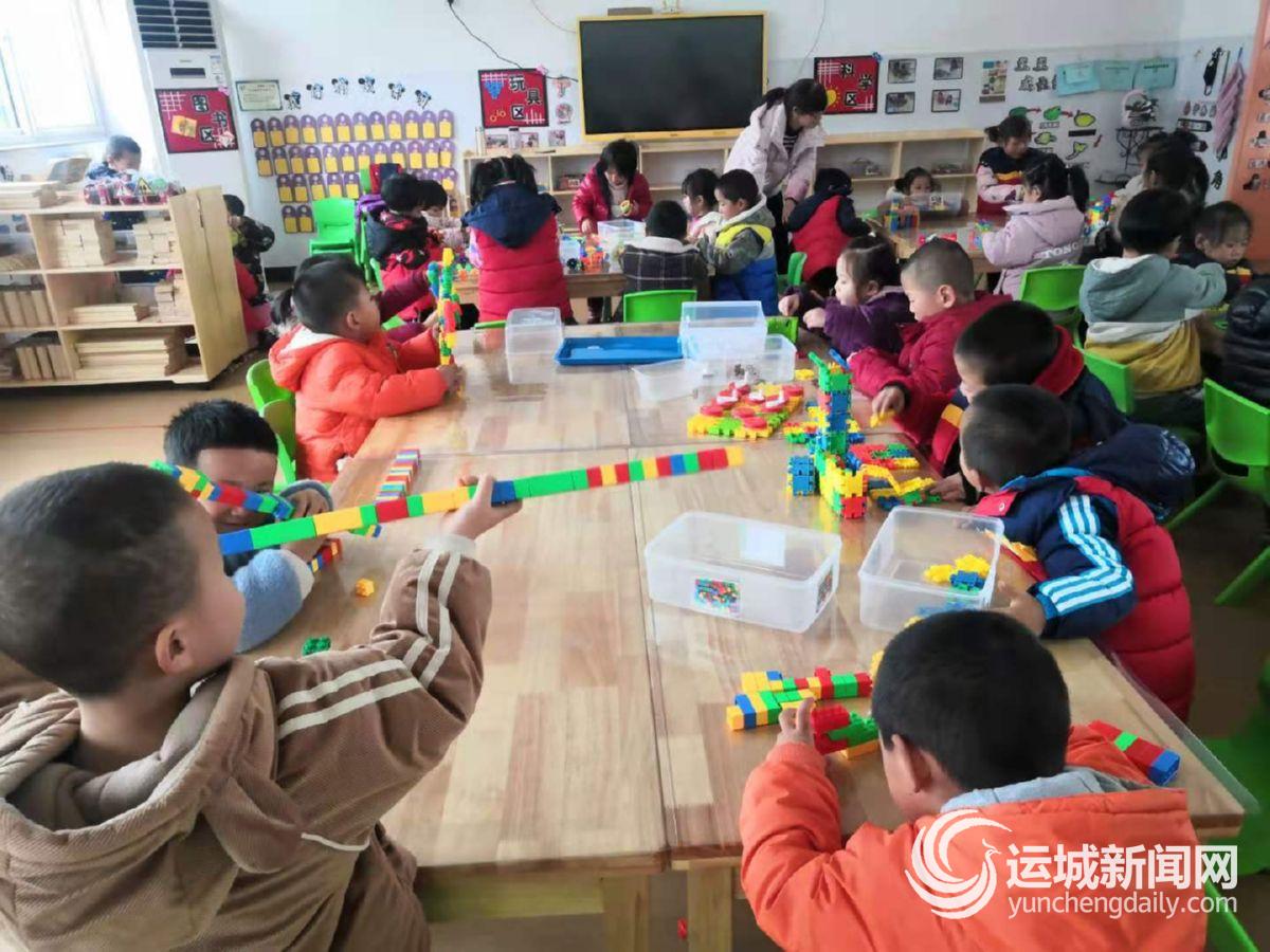近日,芮城县寿圣幼儿园的小朋友在进行搭积木游戏。李宏伟 摄