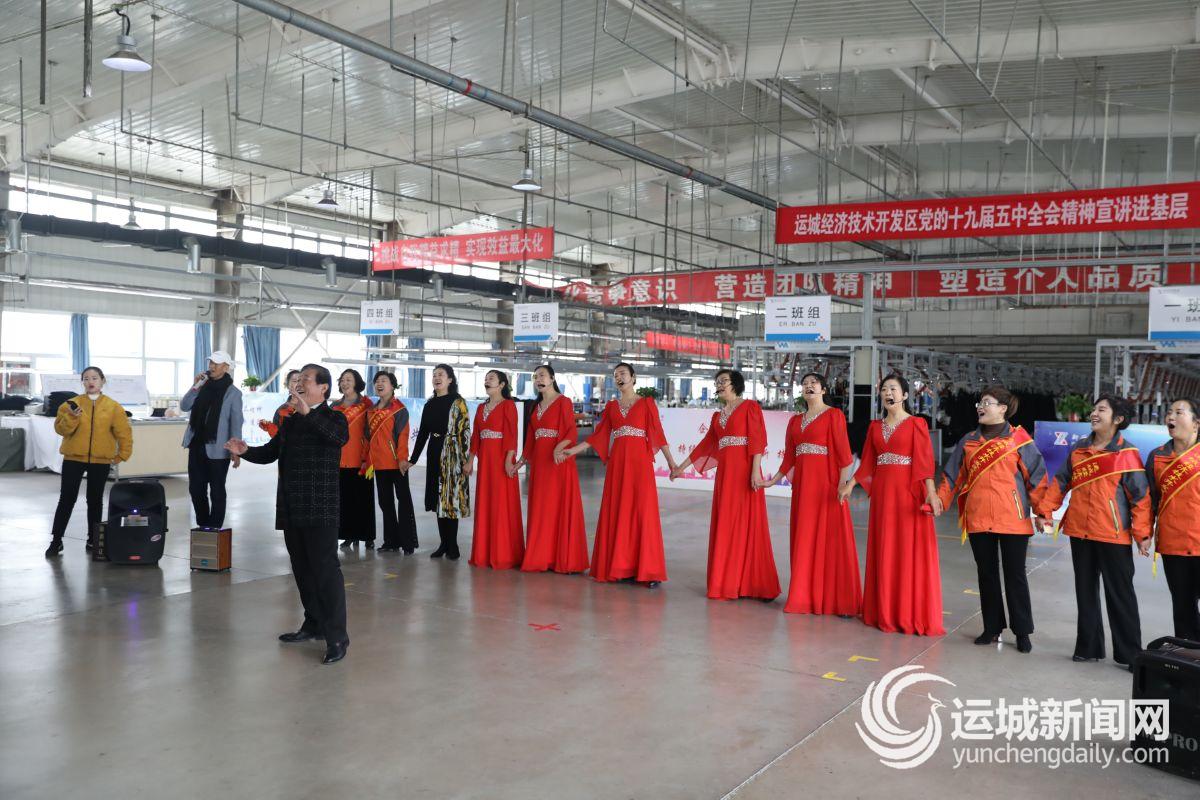 12月8日,在运城创大汽配有限公司和际华三五三四有限公司生产车间,一场党的十九届五中全会精神进基层文艺演出精彩上演,在轻松愉快的氛围中营造出开发区企业职工学习全会精神,展望美好生活的良好氛围。
