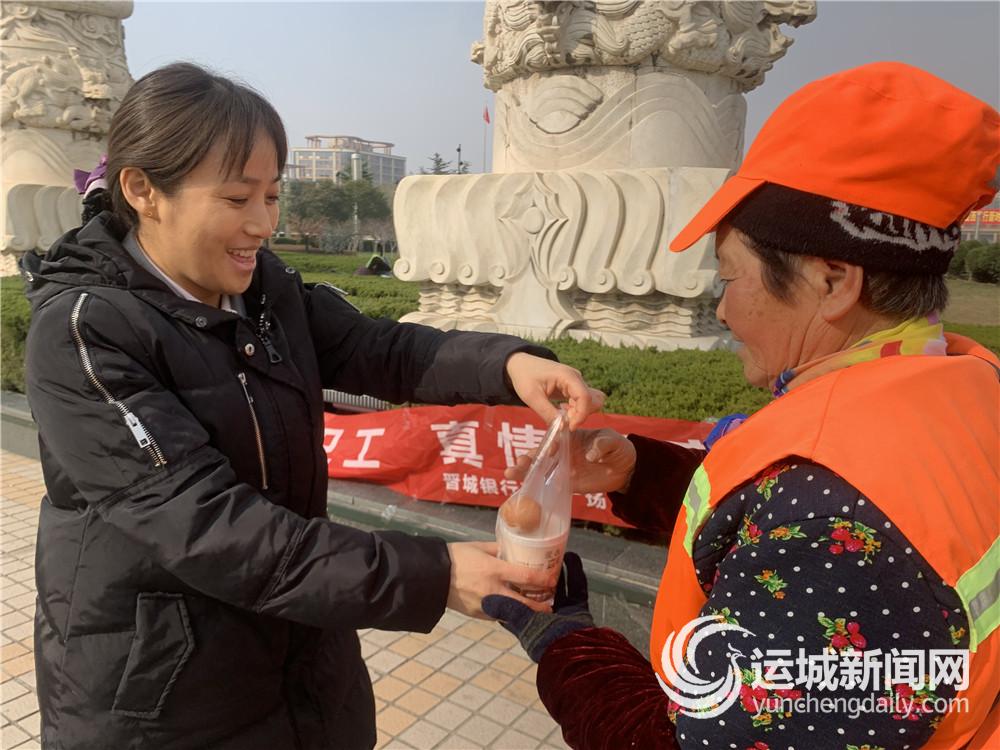运城晚报讯(记者 廖旌汝 见习记者 李婷)12月10日,晋城银行运城南风广场支行组织开展“心系环卫工 真情暖寒冬”活动,义务为环卫工提供营养餐。