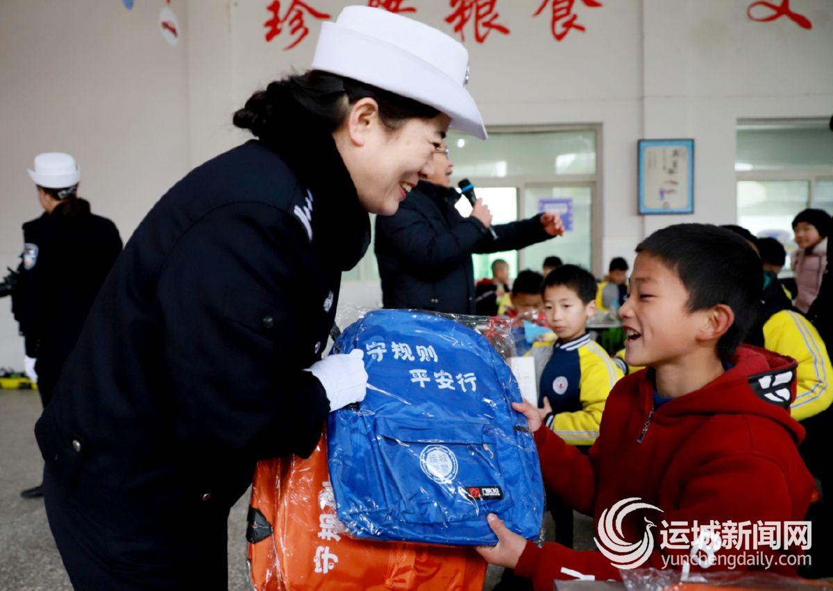 运城晚报讯(记者 樊朋展 见习记者 张萌芝)12月7日,市公安局交警支队的民警来到芮城县学张小学,给孩子们上了一堂生动有趣的交通安全教育课,并给留守儿童赠送了书包等学习用品。