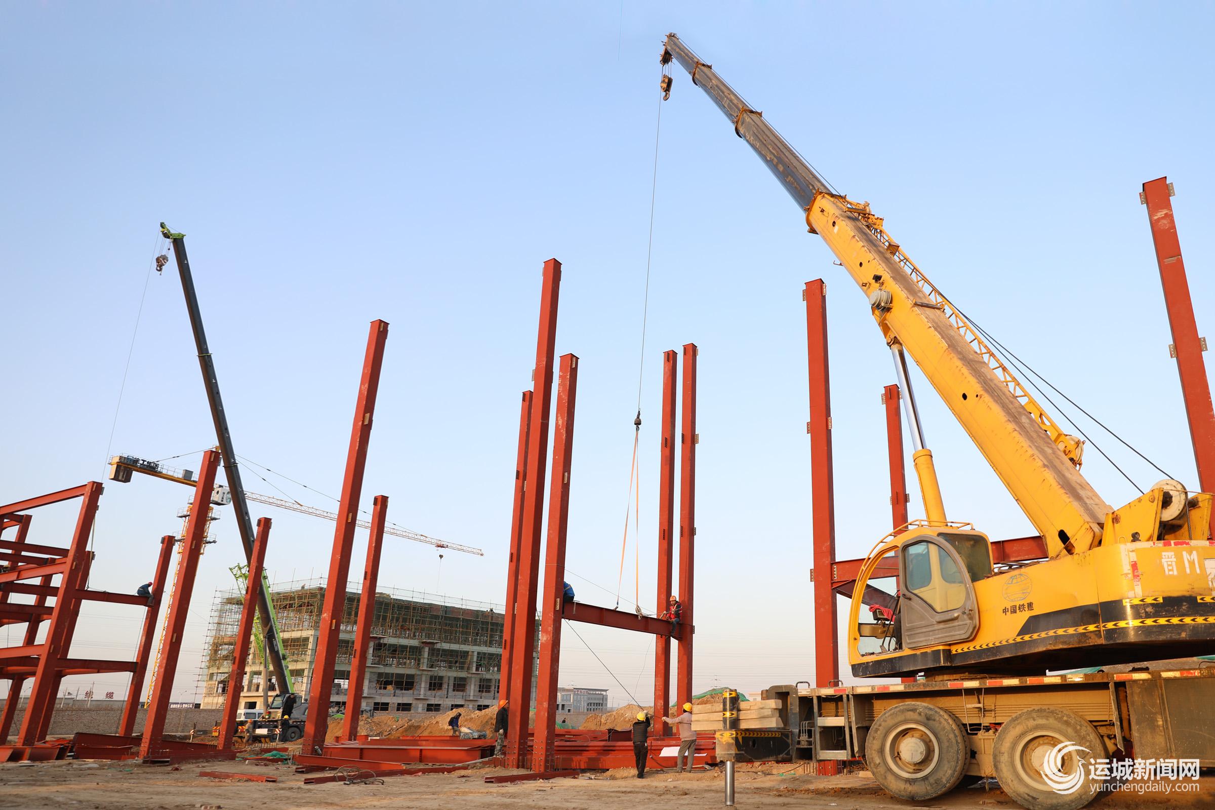 12月16日,工人冒着严寒在运城市创大汽配有限公司项目工地紧张施工。