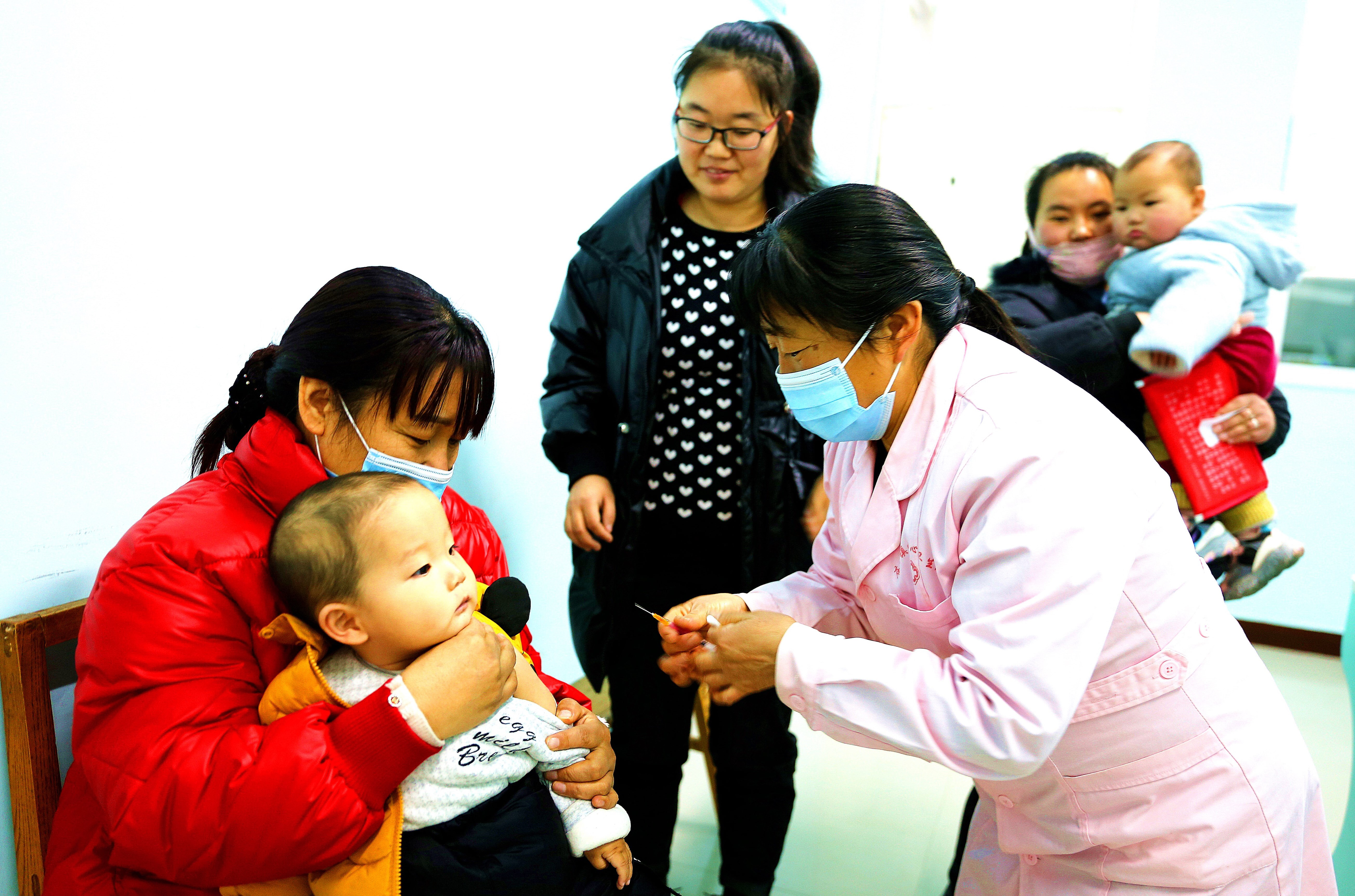 ▲12月15日,夏县医疗集团庙前镇中心卫生院医务工作者为婴幼儿接种疫苗。