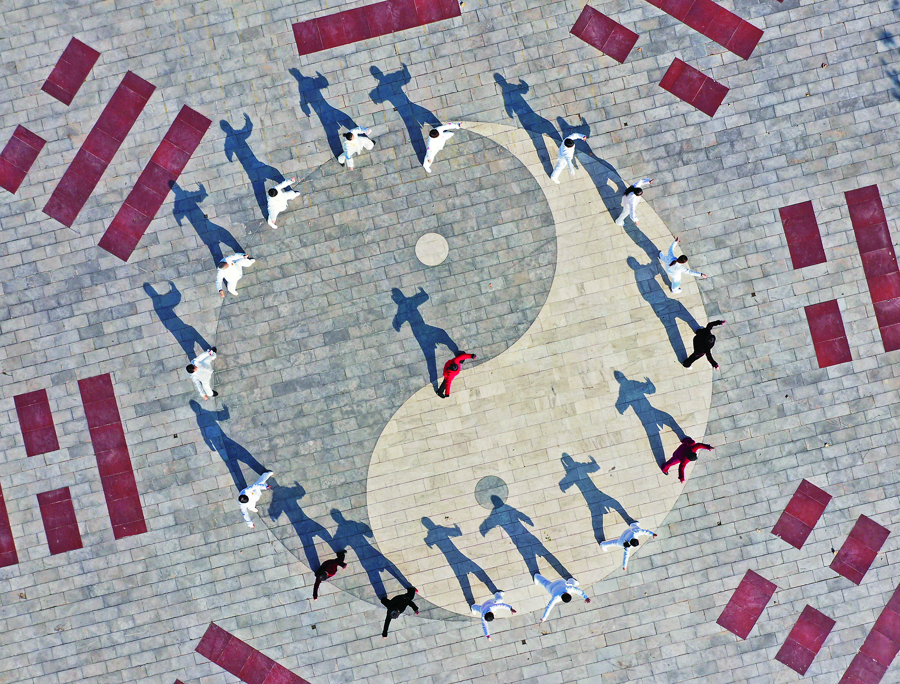 太极拳爱好者在河北省邯郸市永年区太极小镇,习练太极拳(无人机照片,12月16日摄)。