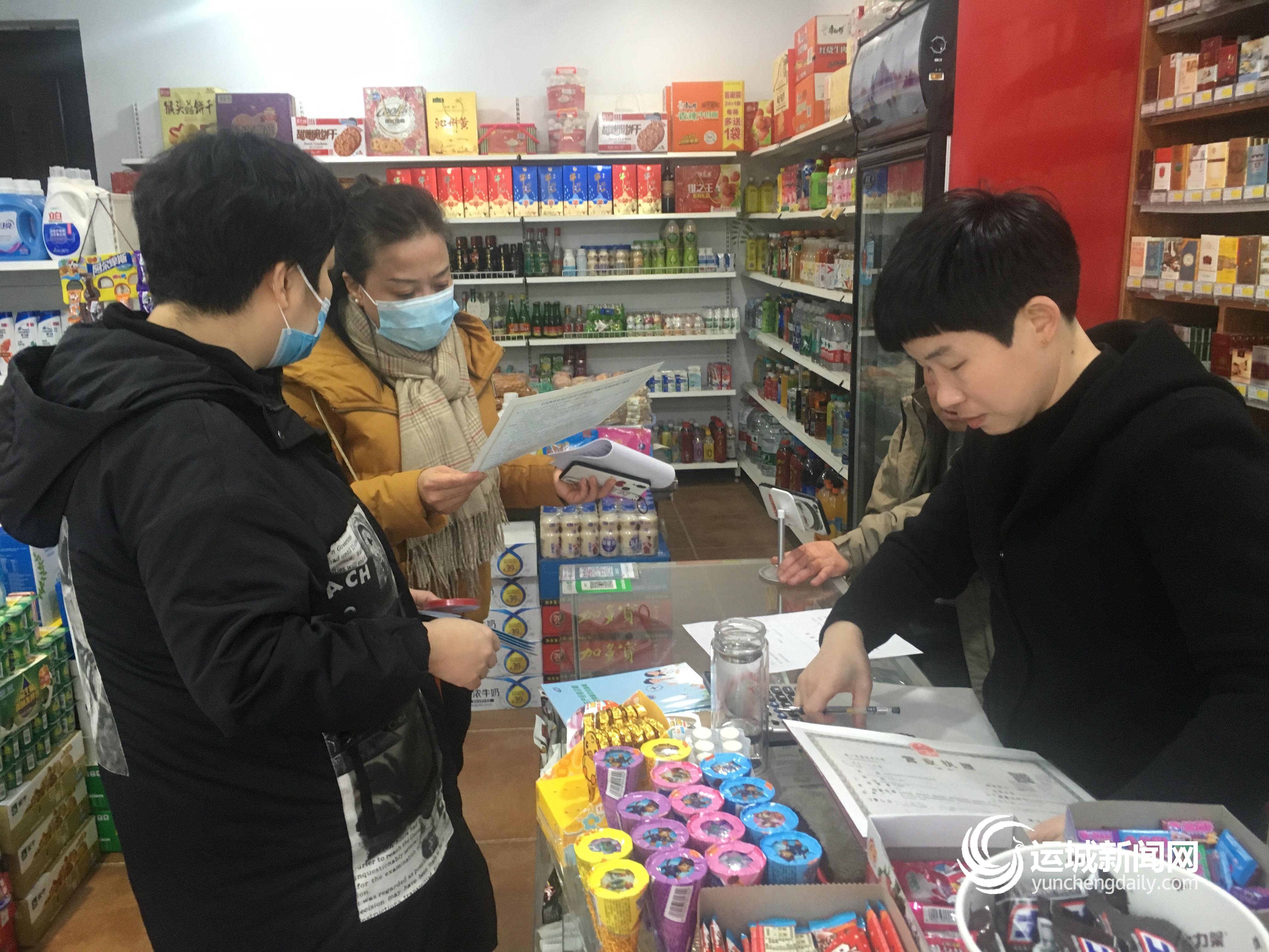 ▲工作人员检查商户经营许可证 樊亚楠 摄