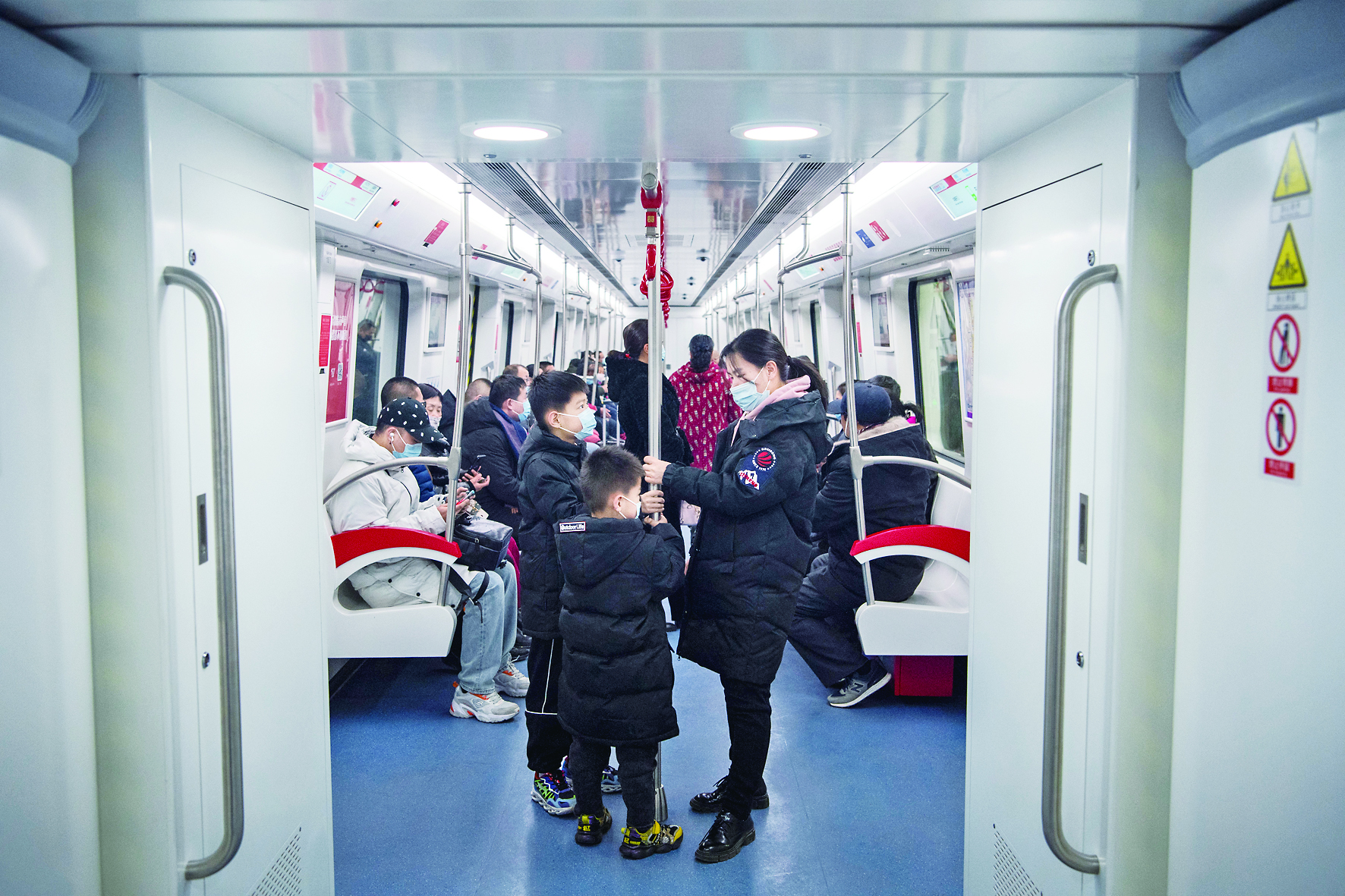 12月26日,市民在太原市轨道交通2号线上。 当日,山西省第一条地铁——太原市轨道交通2号线一期工程正式投入运营。该线路纵贯太原南北,全长23.647公里,共设车站23座。(新华社12.26)