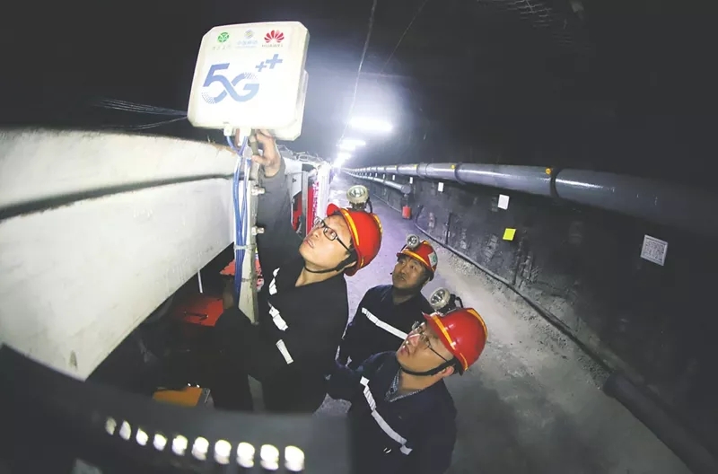 图为技术人员正在调试井下5G设备。叶海锋 摄
