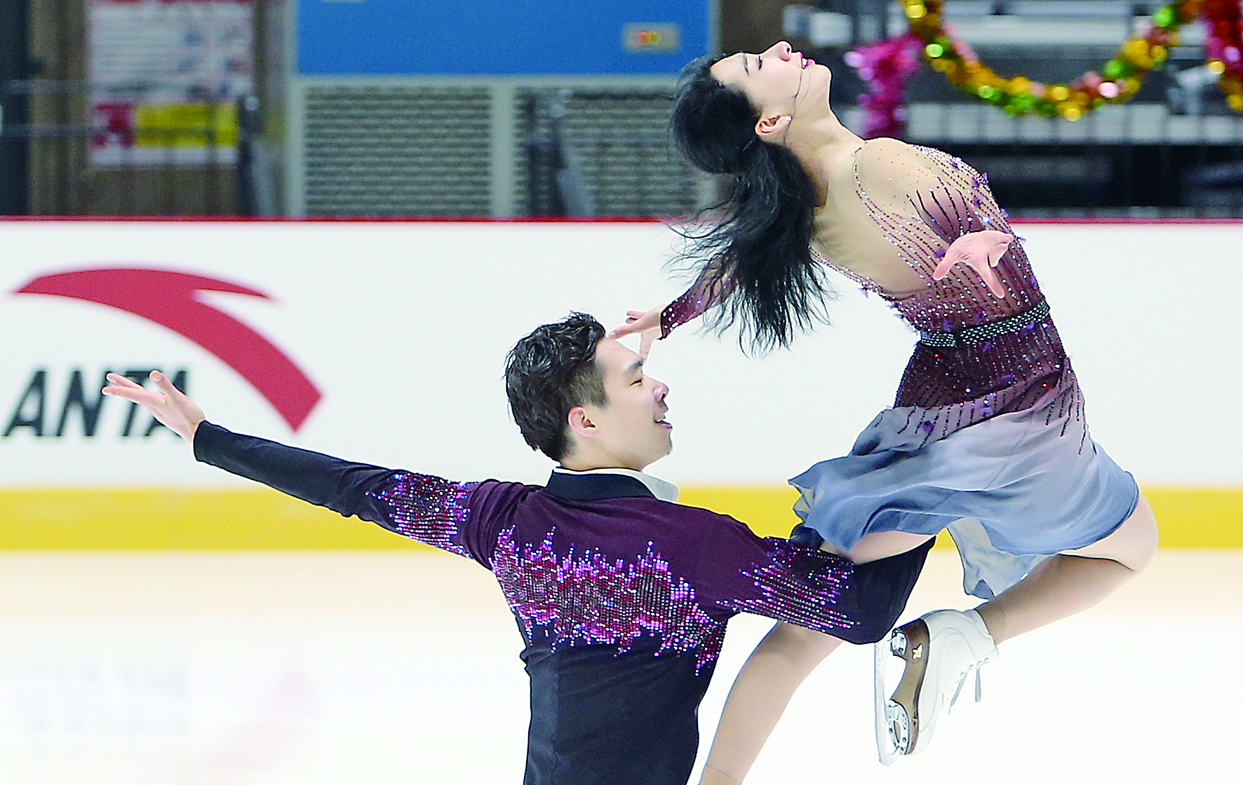 1月2日,“精英队”选手陈宏(右)/孙茁鸣在冰舞自由舞比赛中。 当日,国家花样滑冰集训队团队对抗赛在北京首钢花样滑冰馆落幕。双人滑搭档隋文静和韩聪分别率领两支队伍“精英队”和“尖刀队”角逐赛场。最终,“尖刀队”以总分955.38分获胜。