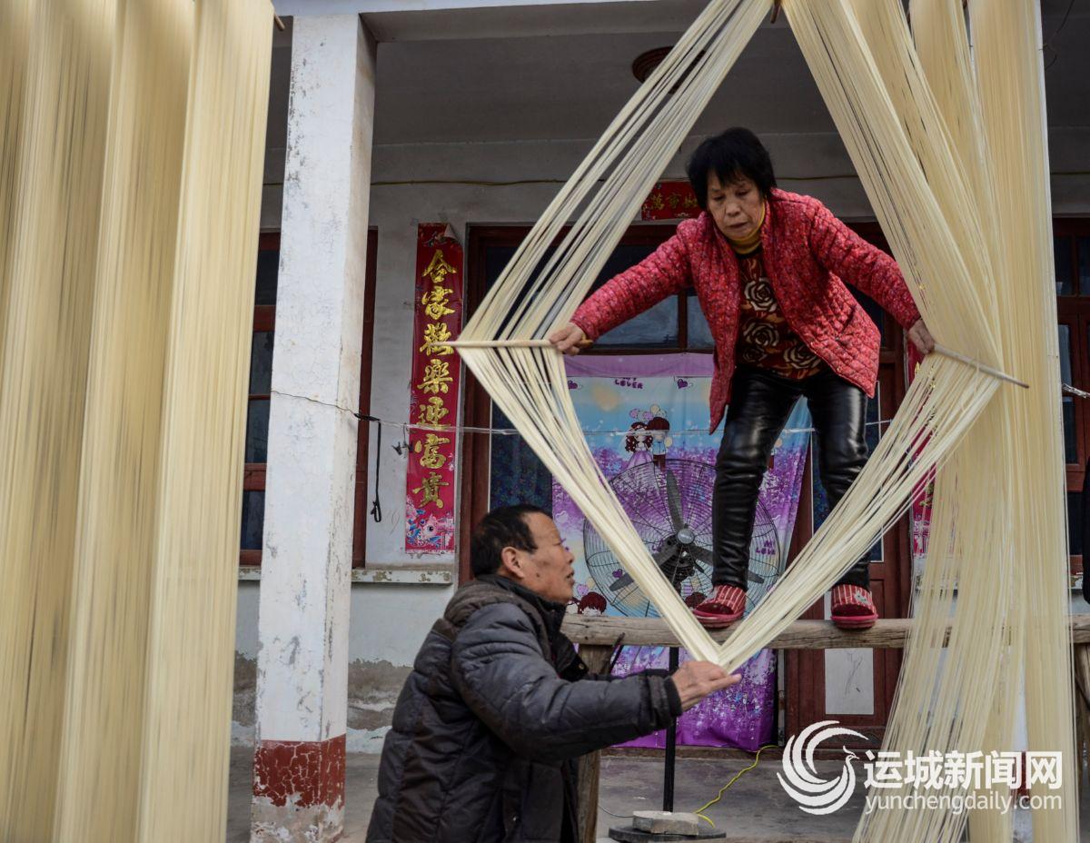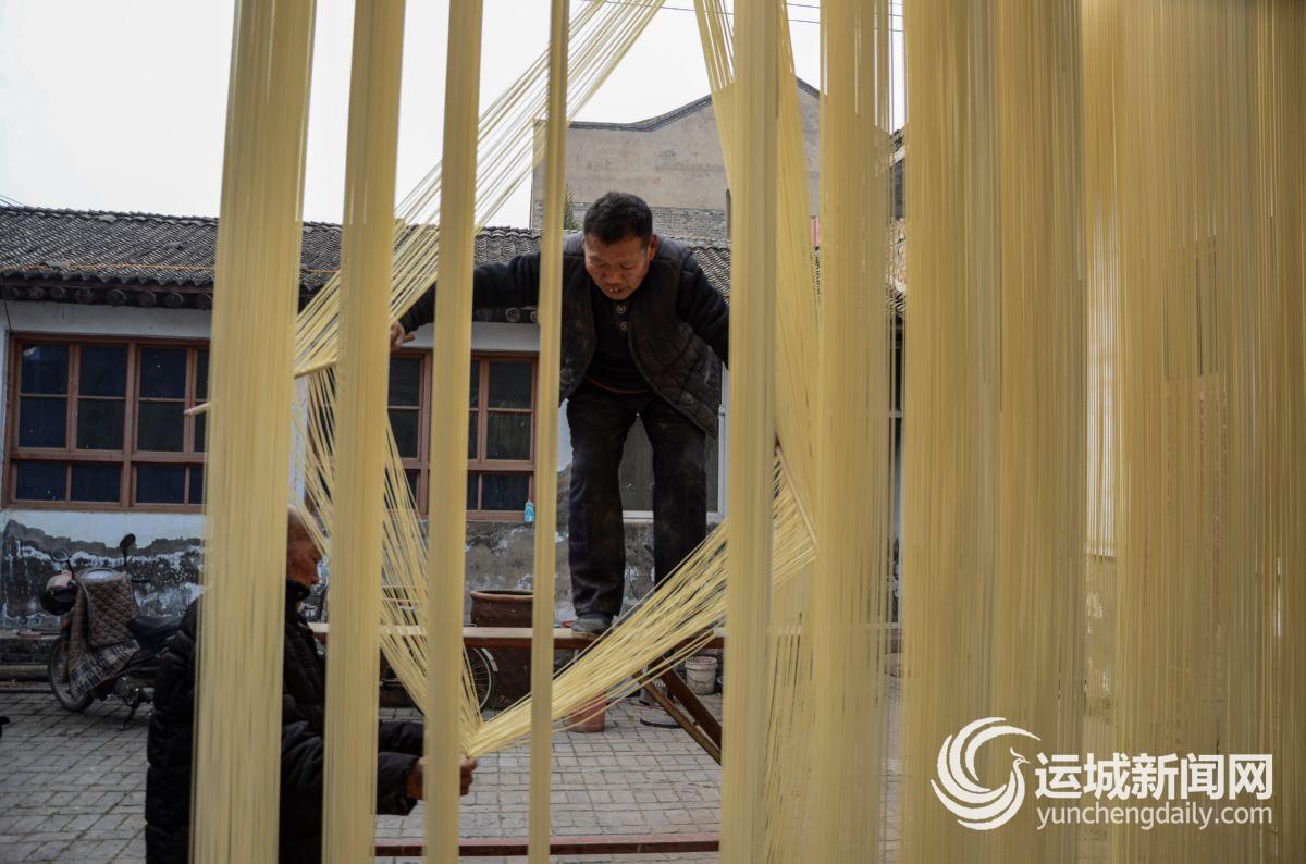 ▲2020年12月26日,夏县裴介镇鲁因村村民在整理空心挂面。