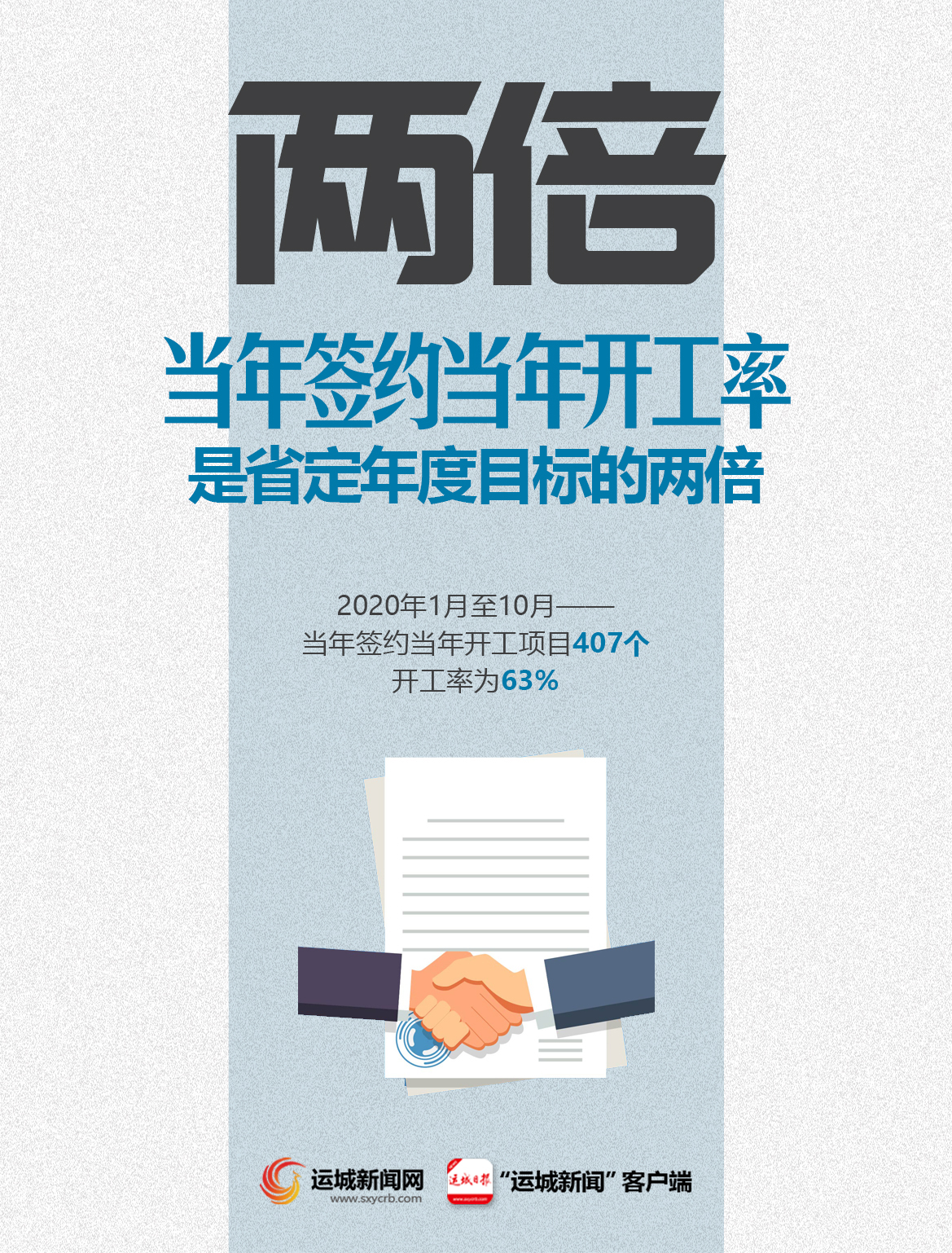 开工项目417个,总投资706.4亿元,同比增长69.64%,完成省定年度目标任务的210.86%。其中,当年签约当年开工项目407个,开工率为63%,是省定开工率目标任务的两倍。