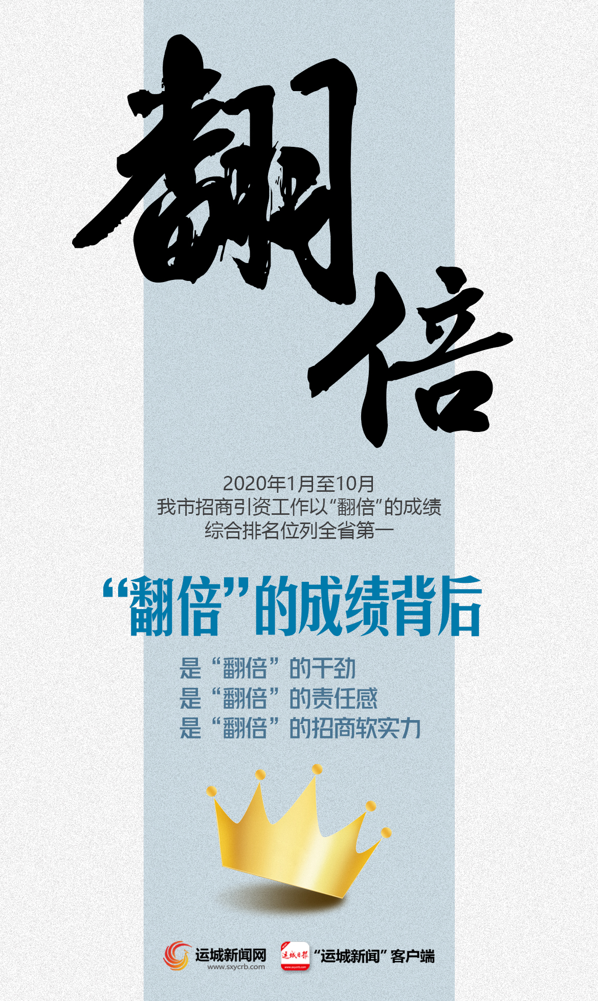 2020年1月至10月,我市招商引资工作以“翻倍”的成绩,综合排名位列全省第一。“翻倍”的成绩背后,是“翻倍”的干劲,是“翻倍”的责任感,是“翻倍”的招商软实力。