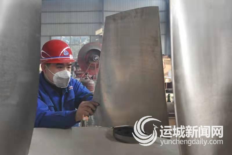 1月3日,山西巨龙风机有限公司生产车间内,技术人员在检验高强度航空锻造铝叶片,严把产品质量关。