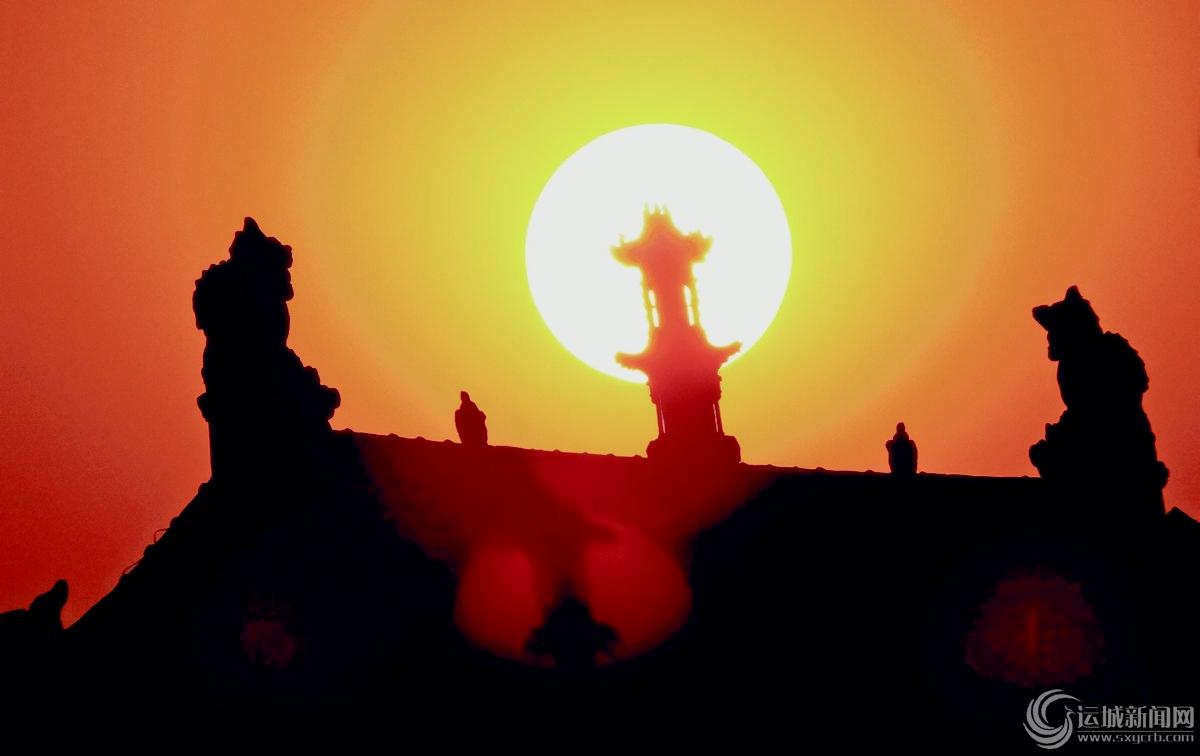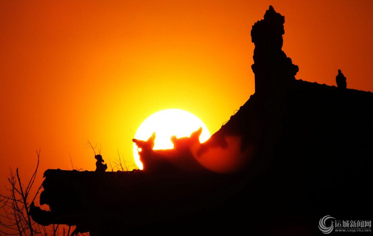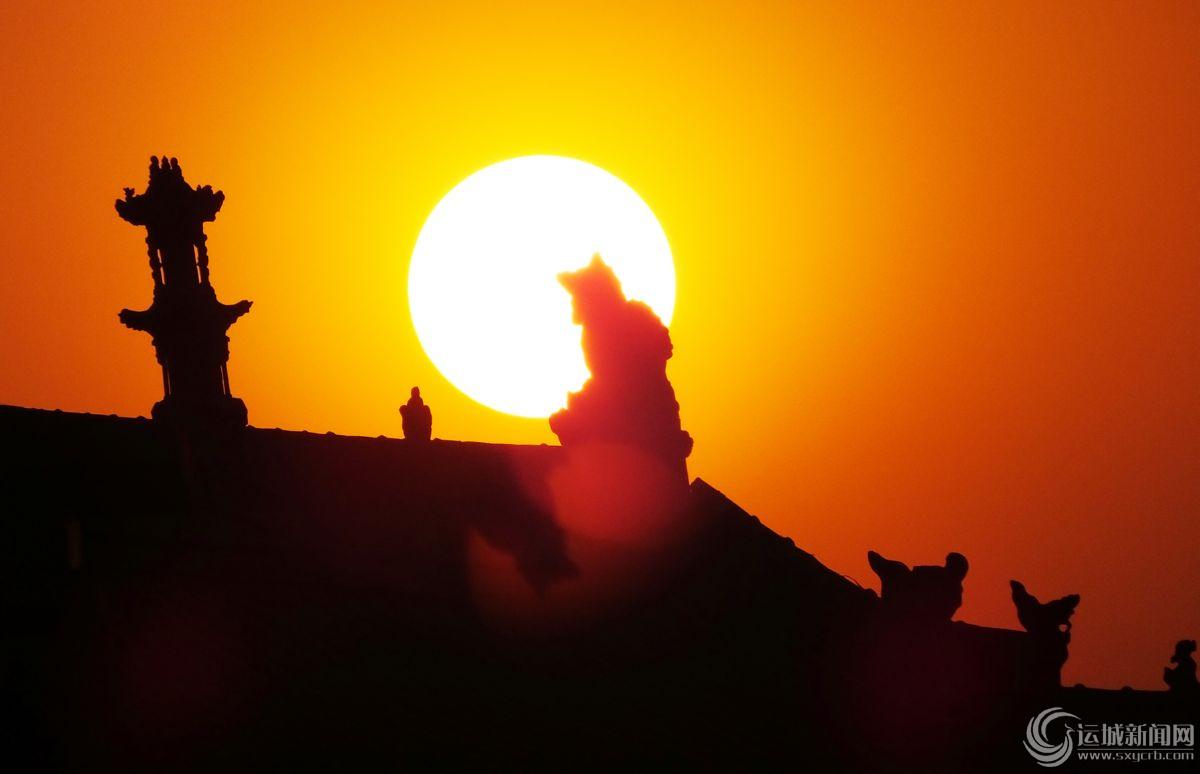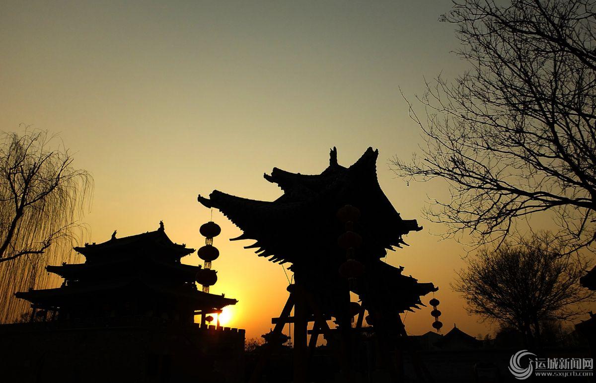 当日是元旦小长假第3天,一轮红彤彤的夕阳映红古城绛州。 特约摄影 高新生